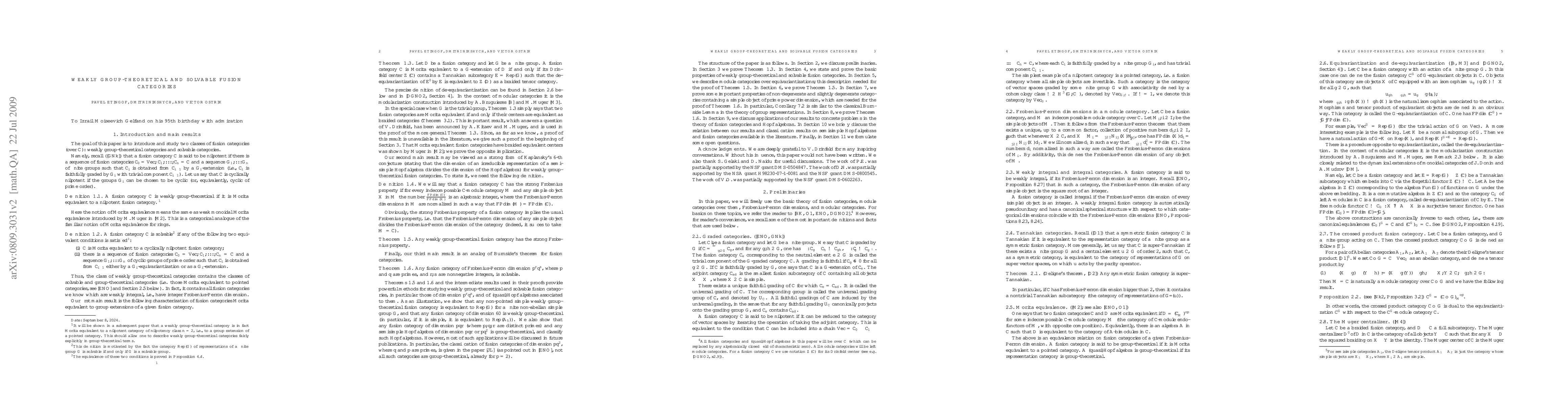 This paper introduces weakly group-theoretical and solvable fusion categories derived from finite groups, proving that weakly group-theoretical categories possess the strong Frobenius property. It also classifies fusion categories with dimensions having at most two prime factors as solvable, leading to the classification of semisimple Hopf algebras of specific dimensions.