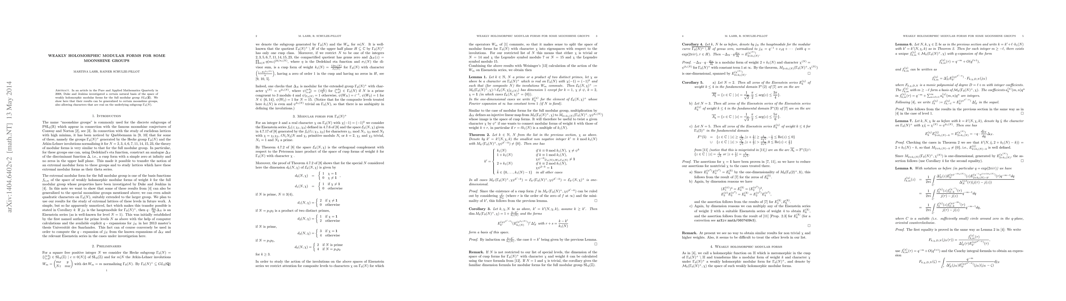 In an article in the Pure and Applied Mathematics Quarterly in 2008, Duke and Jenkins investigated a certain natural basis of the space of weakly holomorphic modular forms for the full modular group $SL_2({\bf Z})$. We show here that their results can be generalized to certain moonshine groups, also allowing characters that are real on the underlying subgroup $\Gamma_0(N)$.