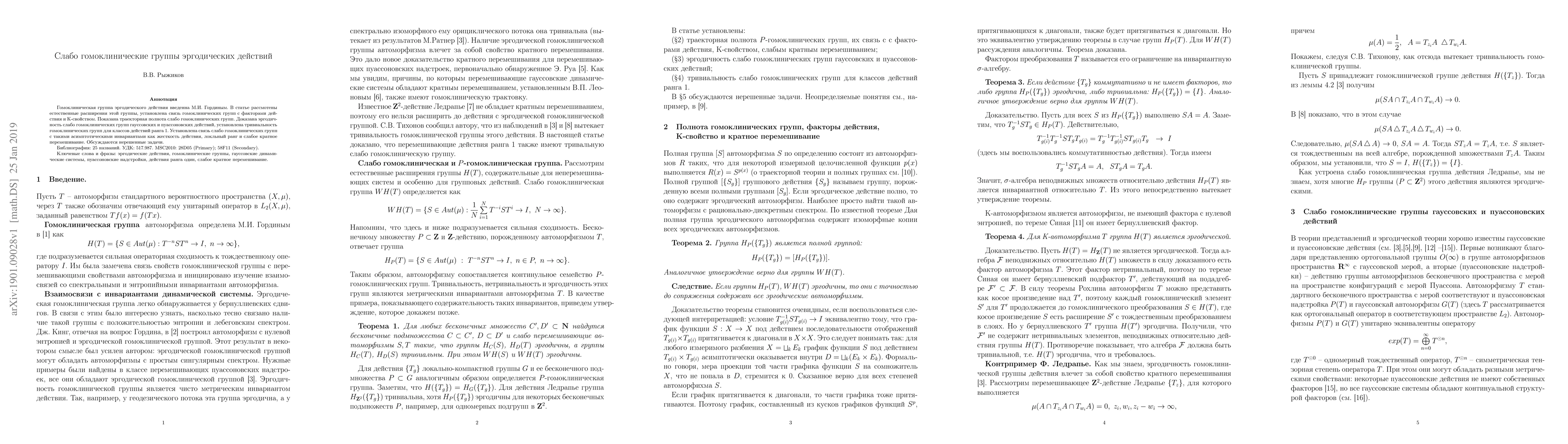 This work contains the following results: the trajectory fullness of the homoclinic groups, their connections with factors, K-property, weak multiple mixing; the ergodicity of the weakly homoclinic group for Gauss and Poisson actions; the triviality of the weakly homoclinic group for classes of rank-1 actions. Some open problems are discussed.
