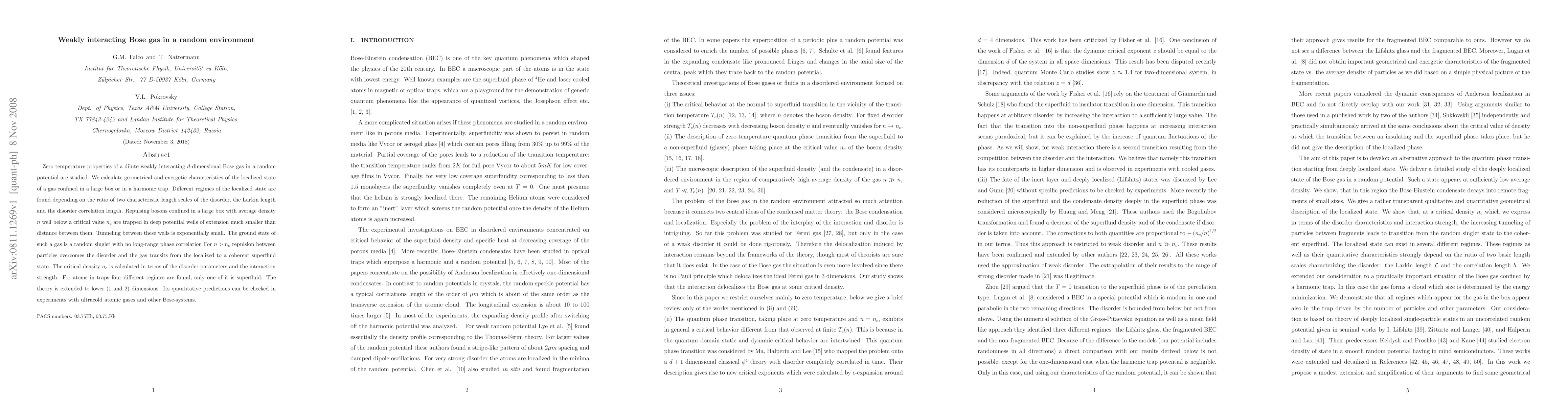 This paper investigates the zero-temperature properties of a weakly interacting Bose gas in a random potential, finding distinct localized and superfluid states depending on the density and disorder characteristics. The critical density for transitioning from localized to superfluid states is calculated, with implications for experiments with ultracold atomic gases.