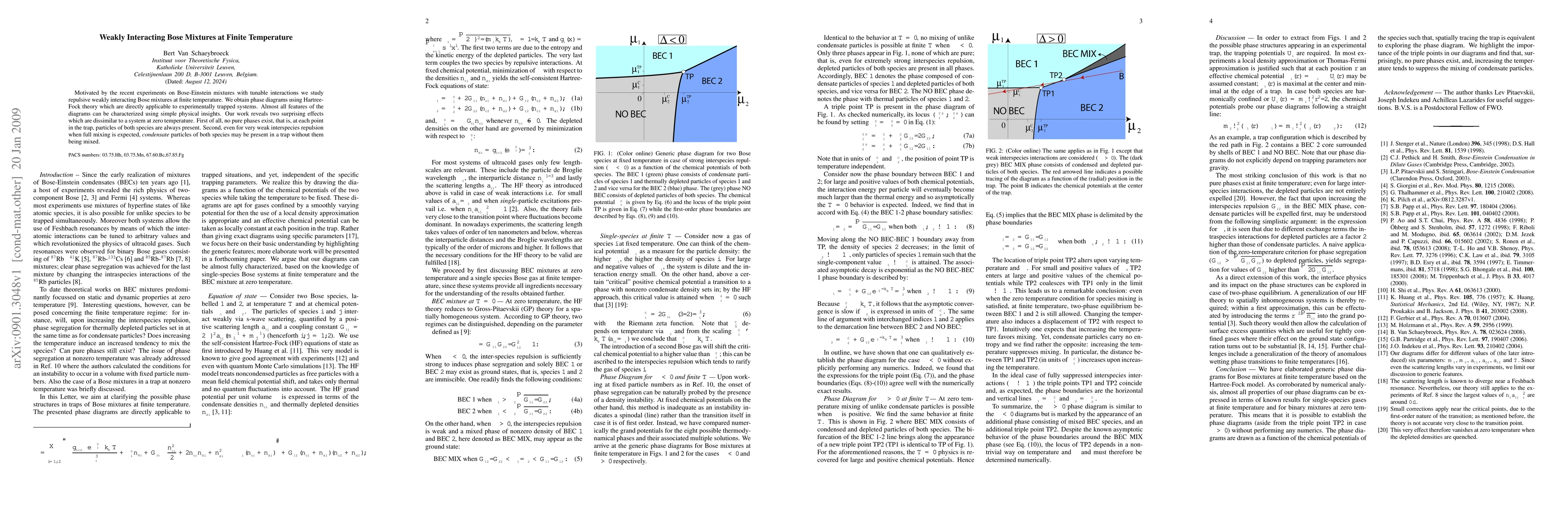 This paper investigates repulsive weakly interacting Bose mixtures at finite temperature, revealing that no pure phases exist and condensate particles of both species can coexist without mixing, contrary to zero-temperature expectations. Phase diagrams derived from Hartree-Fock theory provide insights applicable to experimental trapped systems.