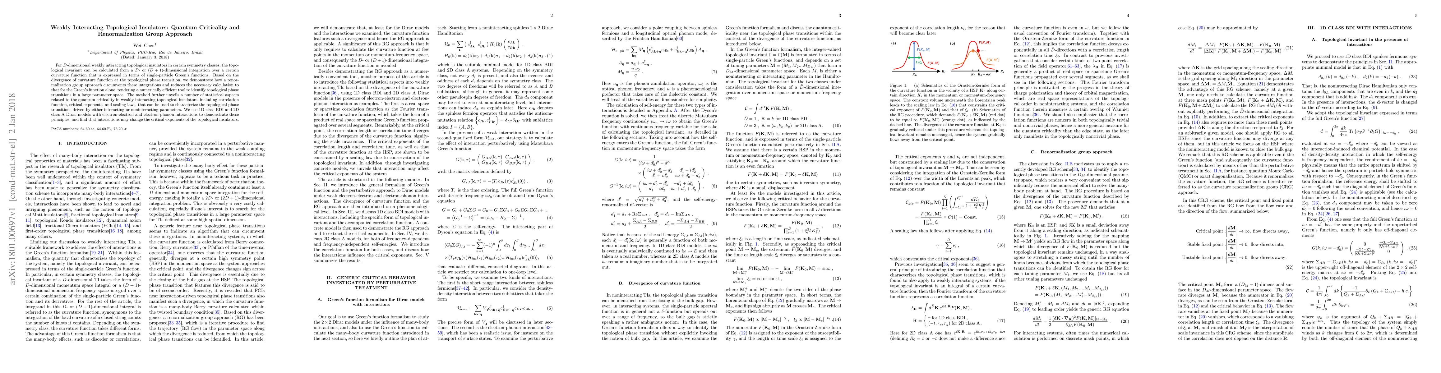 This paper proposes a renormalization group approach to efficiently calculate topological invariants in weakly interacting topological insulators, simplifying the analysis of phase transitions. The method reveals statistical properties like correlation functions and critical exponents, demonstrating its utility in characterizing transitions in models with electron-electron and electron-phonon interactions.