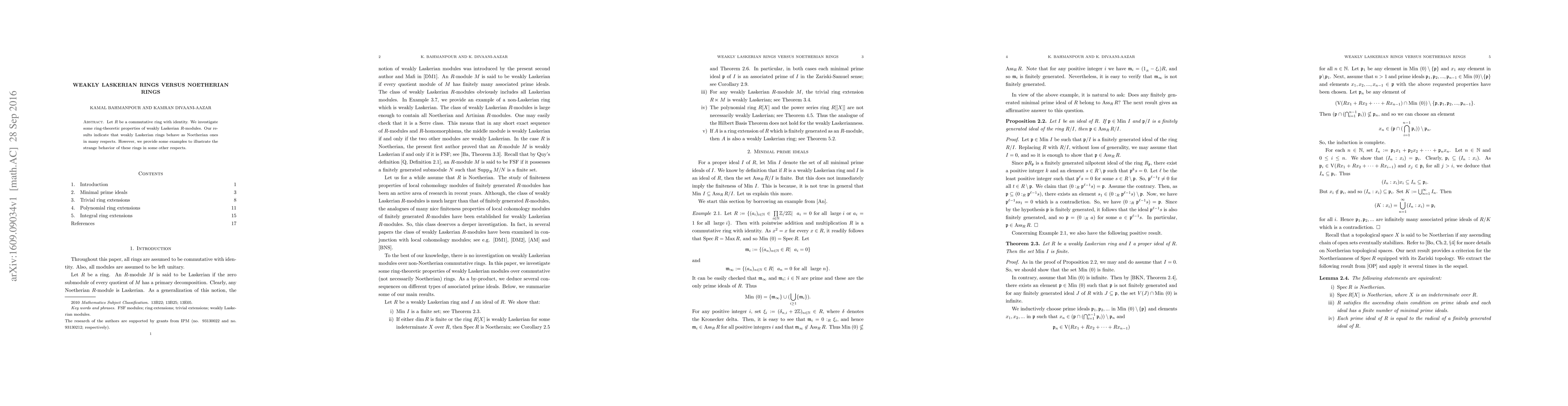 This paper explores the properties of weakly Laskerian rings and compares them to Noetherian rings, finding that weakly Laskerian rings often exhibit similar behaviors to Noetherian ones, though it also highlights unique, non-Noetherian characteristics through specific examples.
