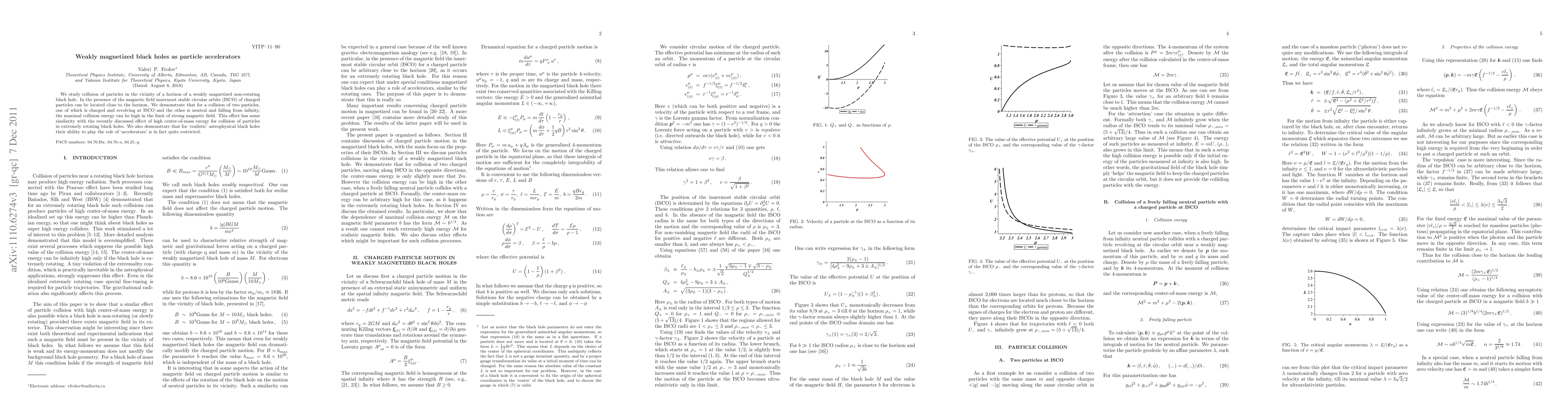 This paper investigates particle collisions near a weakly magnetized, non-rotating black hole, showing that charged particles in the innermost stable circular orbits can achieve high collision energies in strong magnetic fields. It concludes that while this effect is theoretically possible, realistic astrophysical black holes are unlikely to function as particle accelerators.