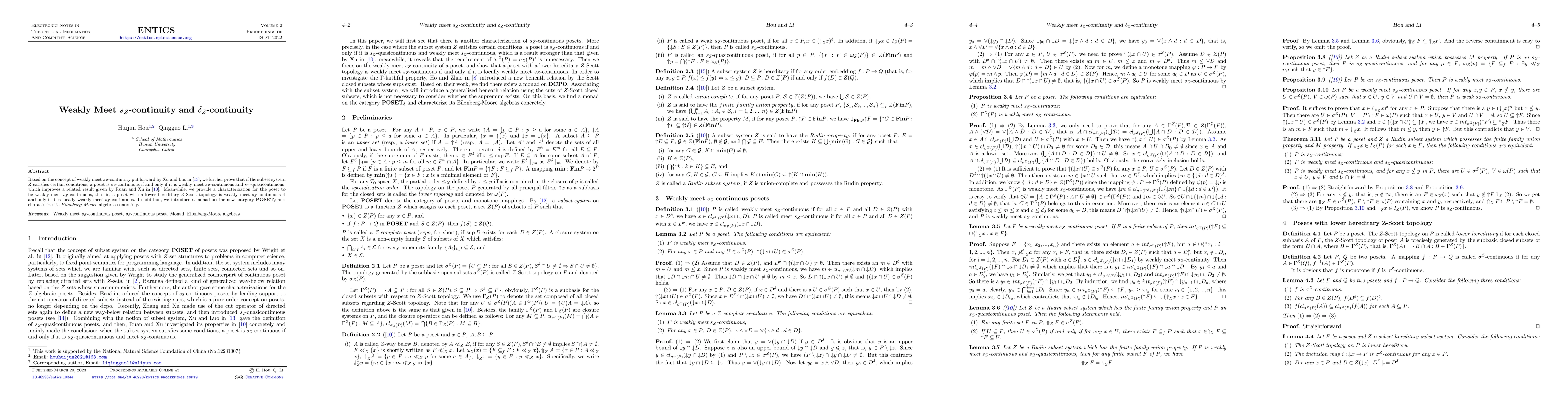 This paper explores the equivalence between $s_{Z}$-continuity and the combination of weakly meet $s_{Z}$-continuity and $s_{Z}$-quasicontinuity under certain conditions on subset system $Z$. It also characterizes posets with a lower hereditary $Z$-Scott topology in terms of weak meet $s_{Z}$-continuity and introduces a monad on $\mathbf{POSET_{\delta}}$ with detailed characterization of its $Eilenberg$-$Moore$ algebras.
