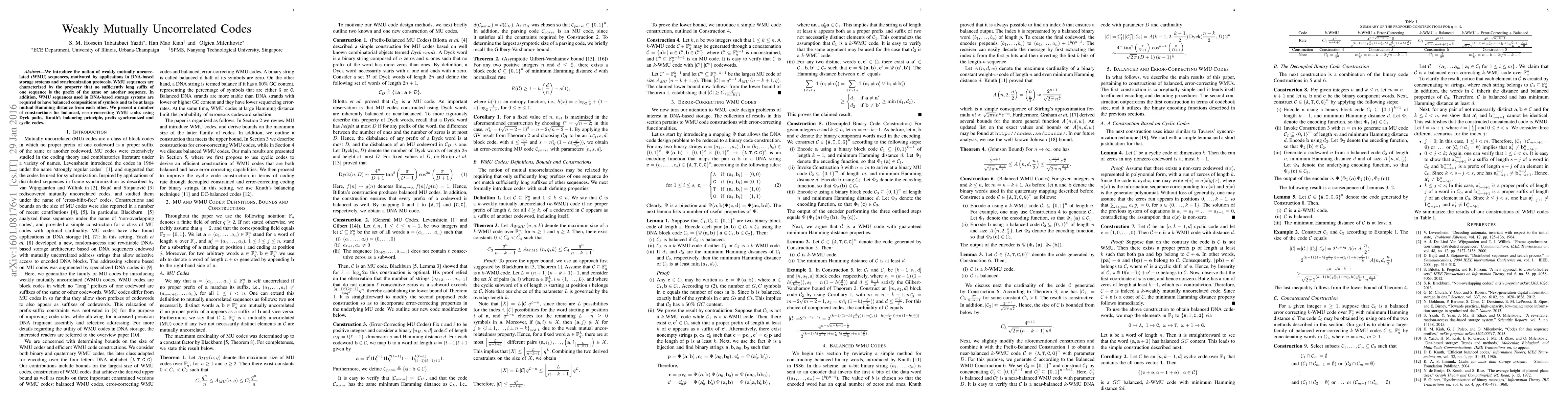 This paper introduces weakly mutually uncorrelated (WMU) sequences for DNA-based storage systems, proposing several constructions for error-correcting WMU codes using various methods.
