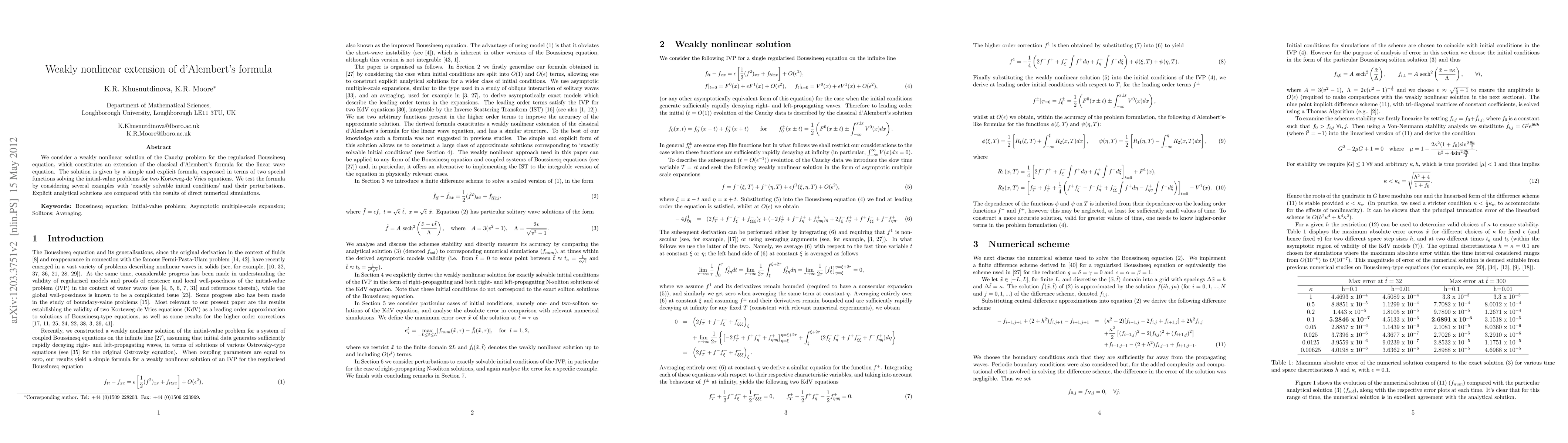 A new formula extends d'Alembert's wave equation with weak nonlinearity, using special functions from the Korteweg-de Vries equations to solve a simplified problem; it is tested against numerical simulations for certain initial conditions.