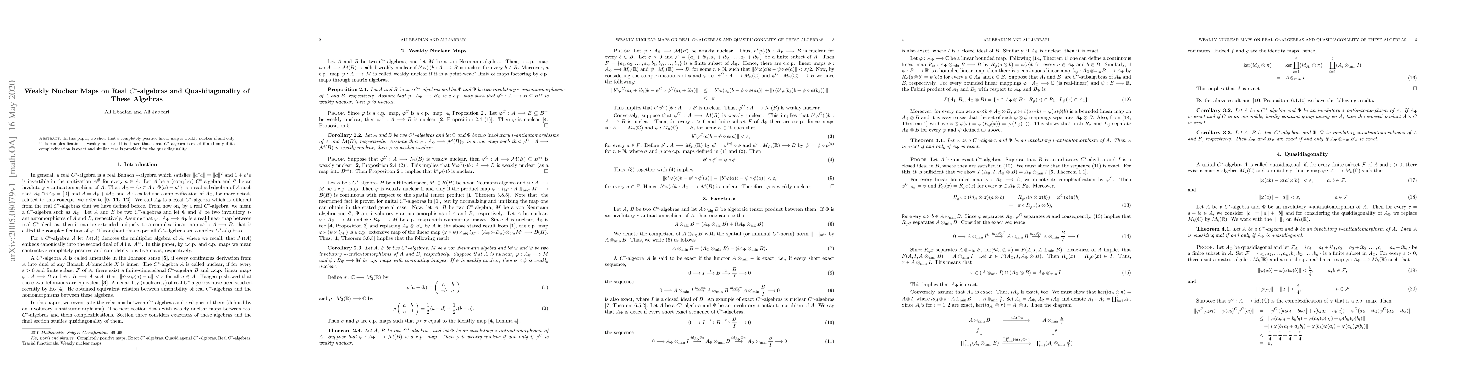 In this paper, we show that a completely positive linear map is weakly nuclear if and only if its complexification is weakly nuclear. It is shown that a real $C^*$-algebra is exact if and only if its complexification is exact and similar case is provided for the quasidiaginality.