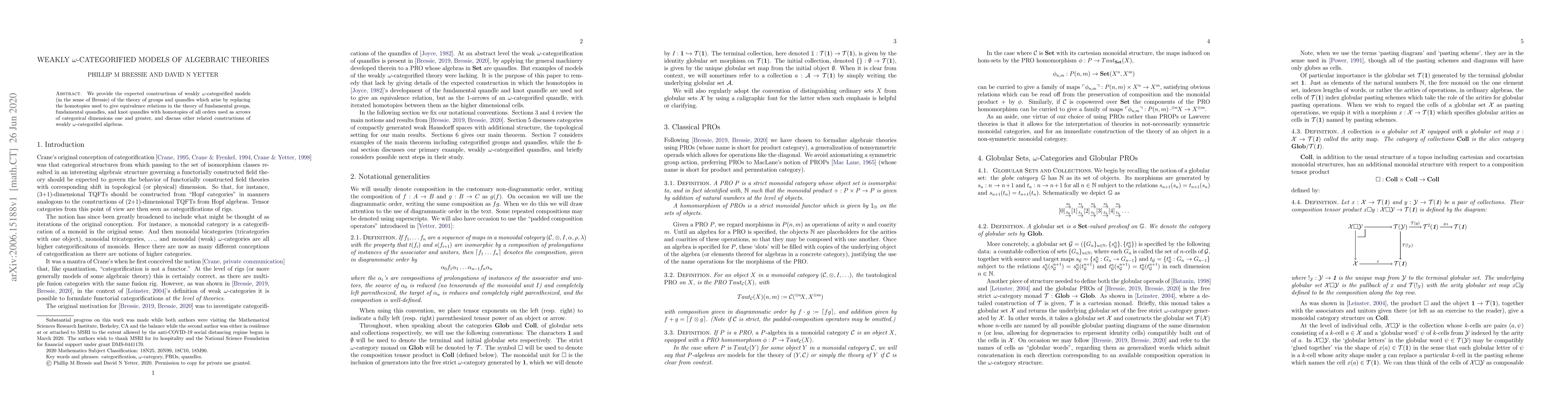 We provide the expected constructions of weakly $\omega$-categorified models (in the sense of Bressie) of the theory of groups and quandles which arise by replacing the homotopies used to give equivalence relations in the theory of fundamental groups, fundamental quandles, and knot quandles with homotopies of all orders used as arrows of categorical dimensions one and greater, and discuss other related constructions of weakly $\omega$-categorifed algebras.