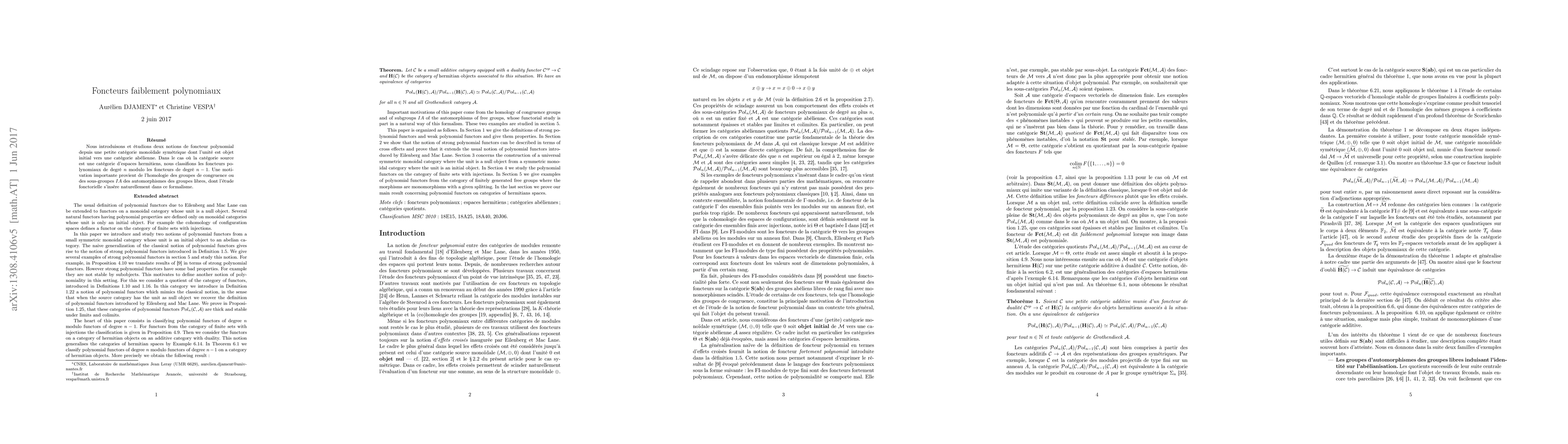 We introduce and study a general notion of polynomial functor from a small monoidal symmetric category whose unit is an initial object and give a classification result of polynomial functors of degree smaller of equal to n modulo those of degree smaller of equal to n-1 in the case of a category of hermitian spaces.