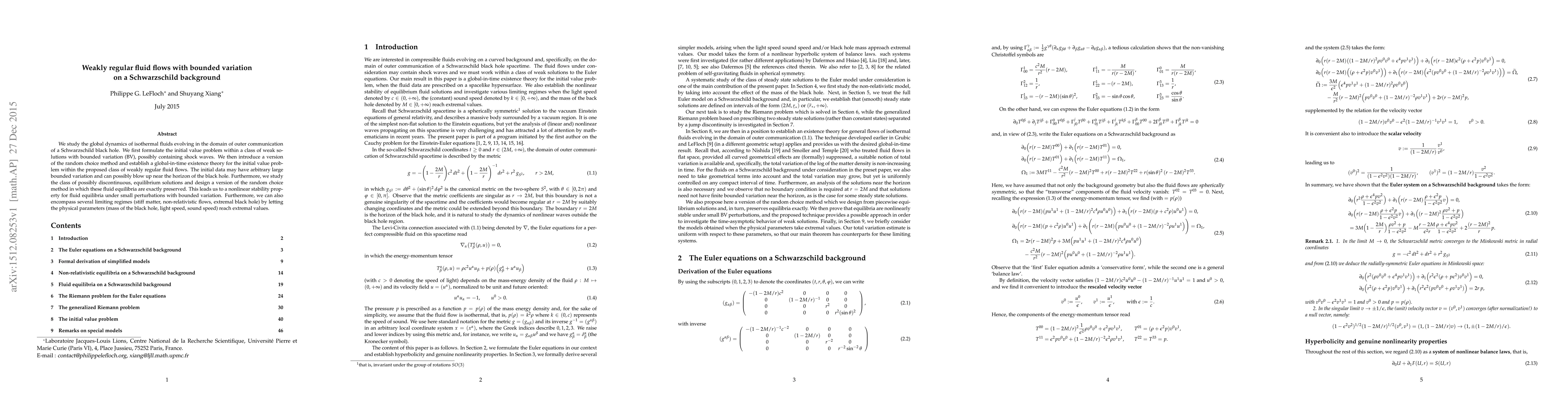 We study the global dynamics of isothermal fluids evolving in the domain of outer communication of a Schwarzschild black hole. We first formulate the initial value problem within a class of weak solutions with bounded variation (BV), possibly containing shock waves. We then introduce a version of the random choice method and establish a global-in-time existence theory for the initial value problem within the proposed class of weakly regular fluid flows. The initial data may have arbitrary large bounded variation and can possibly blow up near the horizon of the black hole. Furthermore, we study the class of possibly discontinuous, equilibrium solutions and design a version of the random choice method in which these fluid equilibria are exactly preserved. This leads us to a nonlinear stability property for fluid equilibria under small perturbations with bounded variation. Furthermore, we can also encompass several limiting regimes (stiff matter, non-relativistic flows, extremal black hole) by letting the physical parameters (mass of the black hole, light speed, sound speed) reach extremal values.