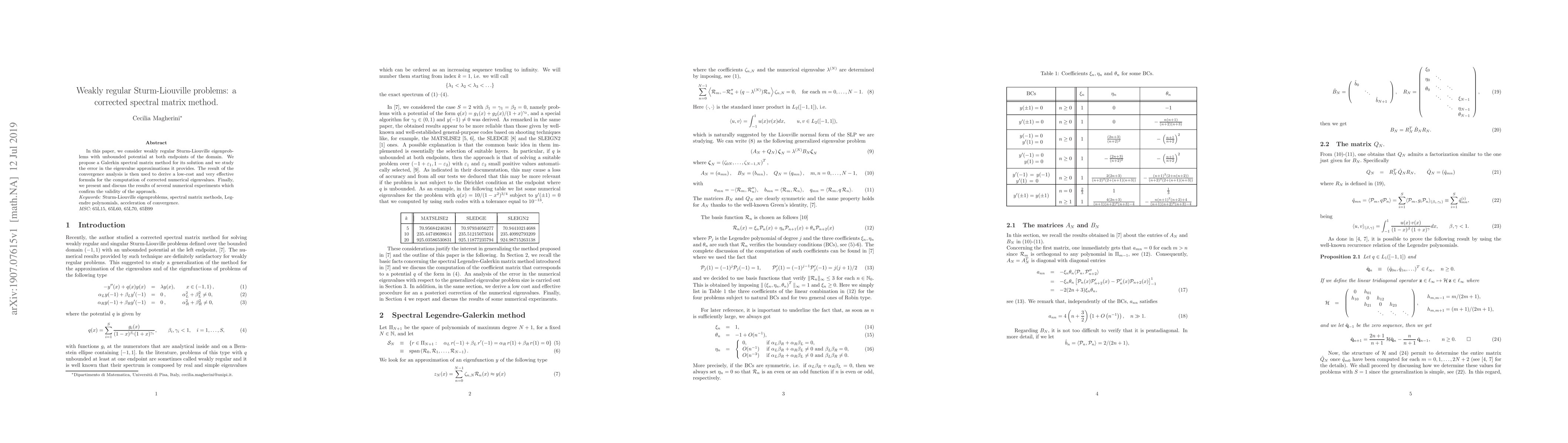 This paper proposes a corrected spectral matrix method for solving weakly regular Sturm-Liouville problems with unbounded potentials. The method provides accurate eigenvalue approximations and is validated through numerical experiments.