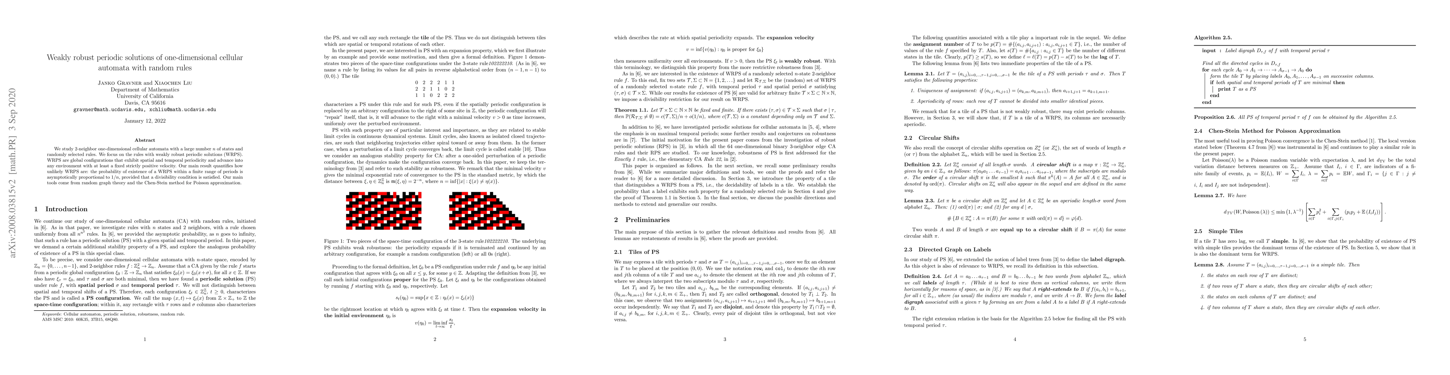 We study $2$-neighbor one-dimensional cellular automata with a large number $n$ of states and randomly selected rules. We focus on the rules with weakly robust periodic solutions (WRPS). WRPS are global configurations that exhibit spatial and temporal periodicity and advance into any environment with at least a fixed strictly positive velocity. Our main result quantifies how unlikely WRPS are: the probability of existence of a WRPS within a finite range of periods is asymptotically proportional to $1/n$, provided that a divisibility condition is satisfied. Our main tools come from random graph theory and the Chen-Stein method for Poisson approximation.