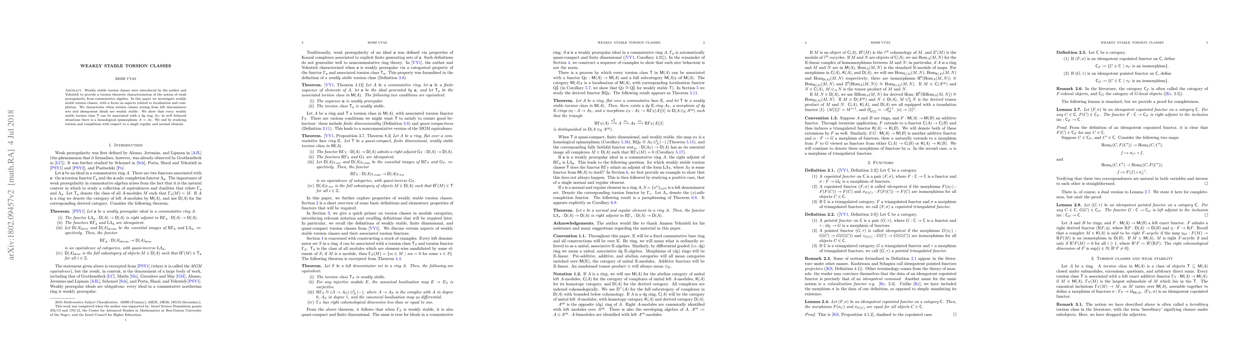 The paper investigates weakly stable torsion classes, focusing on localisation and completion aspects, characterizing when torsion classes from left denominator sets and idempotent ideals are weakly stable, and associating each weakly stable torsion class with a dg ring.