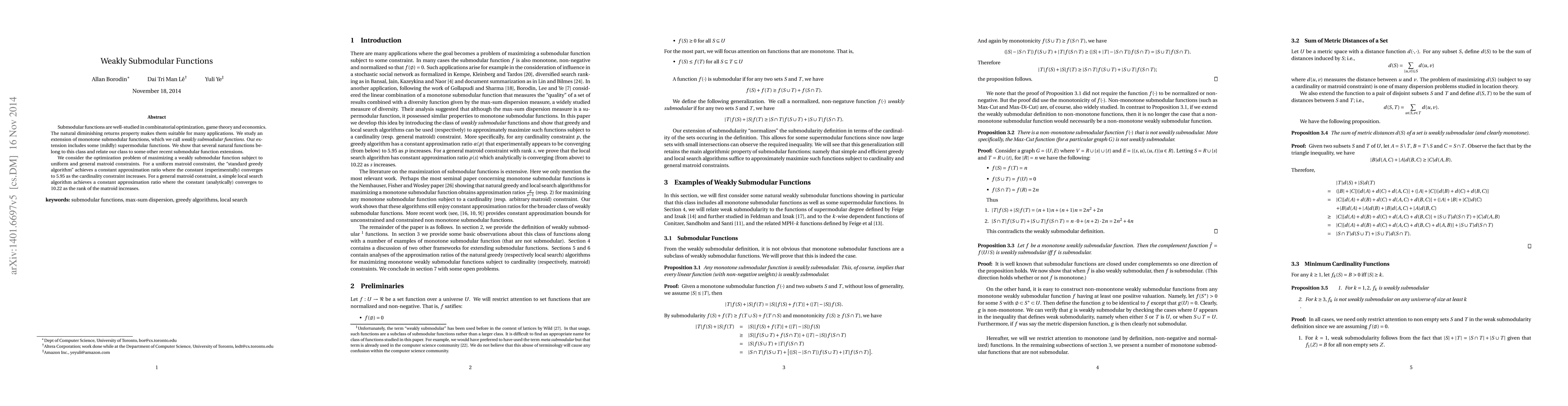 This paper introduces weakly submodular functions, an extension of monotone submodular functions that includes some supermodular functions. It explores optimization problems to maximize these functions under uniform and general matroid constraints, showing that the standard greedy algorithm and a local search algorithm achieve constant approximation ratios.