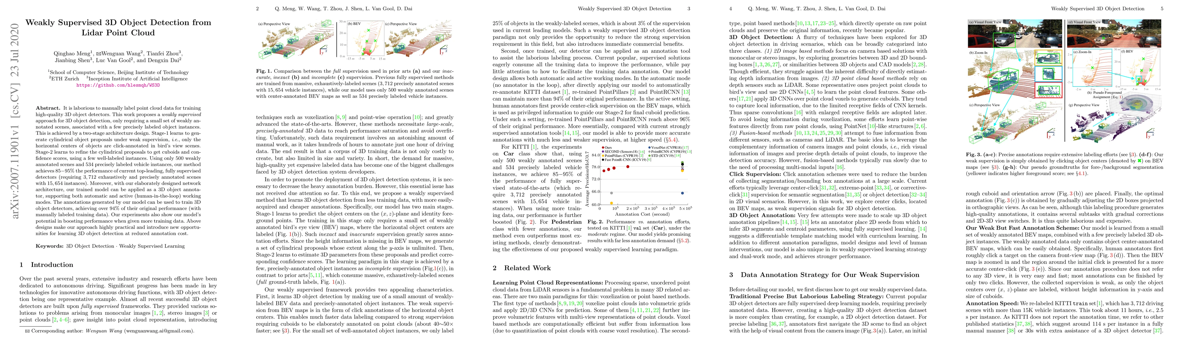 This paper introduces a weakly supervised approach for 3D object detection from Lidar point clouds, utilizing only horizontal center annotations and a few precisely labeled instances. The proposed two-stage architecture achieves near-top performance of fully supervised detectors with significantly reduced labeling effort.
