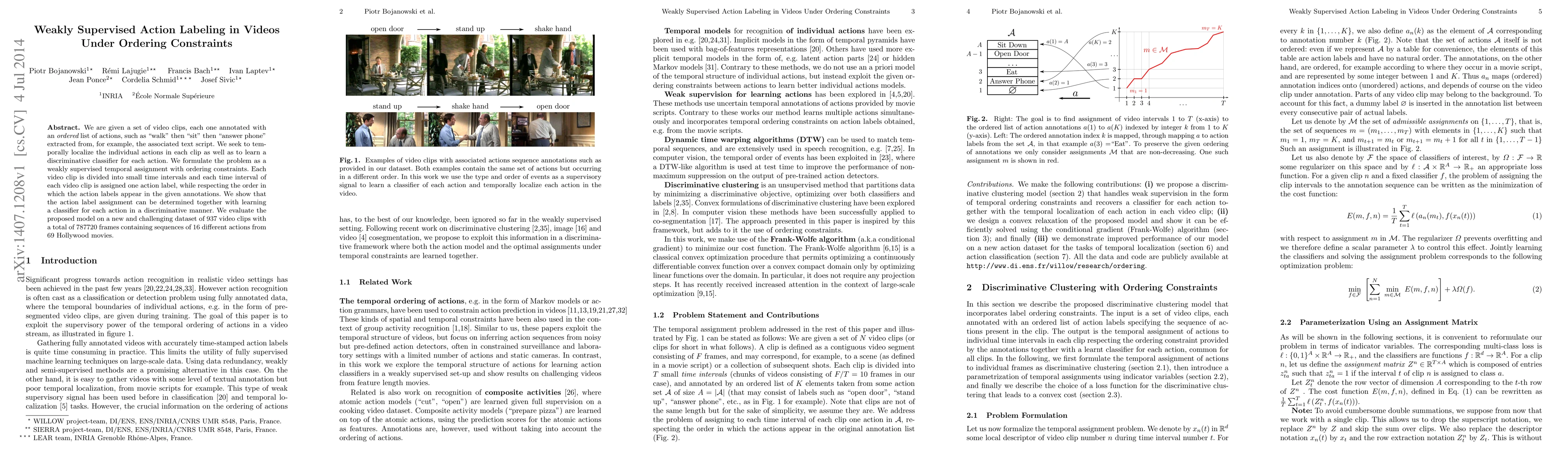 Researchers developed a method to automatically identify actions in video clips while respecting their order, using a new dataset of 937 videos with 16 different actions from 69 Hollywood movies. The approach achieves accurate action localization and classification without requiring explicit annotations.