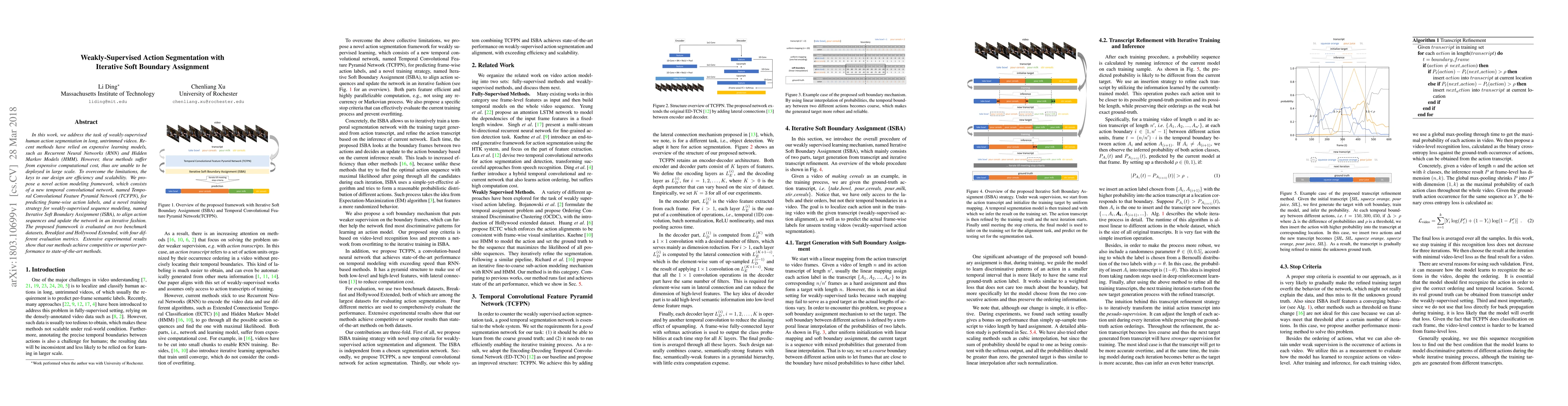 This paper proposes an efficient and scalable framework for weakly-supervised human action segmentation using a Temporal Convolutional Feature Pyramid Network (TCFPN) and an Iterative Soft Boundary Assignment (ISBA) strategy. The approach is shown to achieve competitive performance on benchmark datasets compared to state-of-the-art methods.