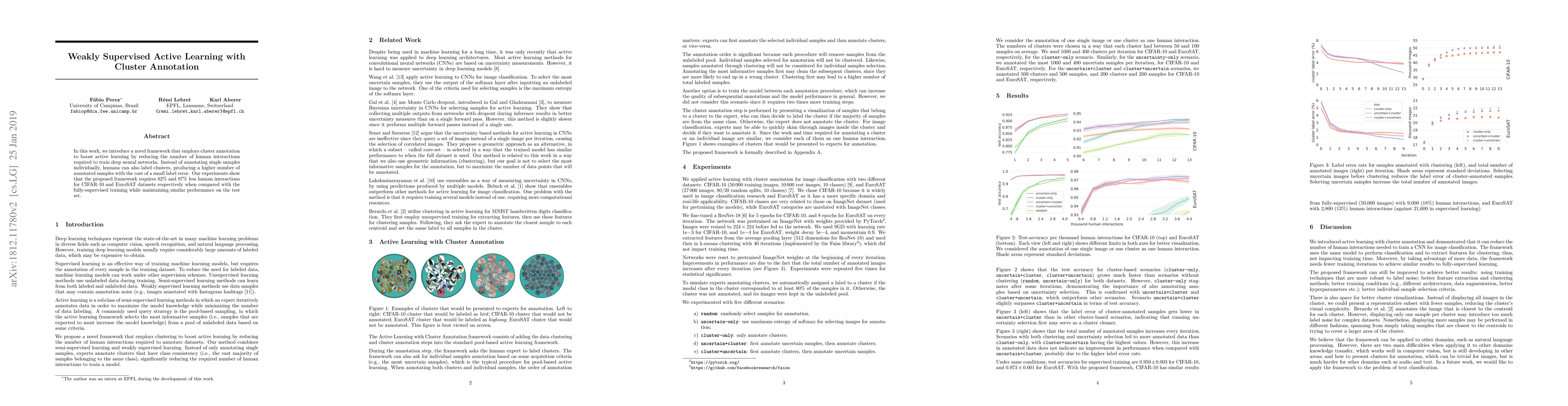 This research paper introduces a new framework for active learning that uses cluster annotation to reduce human interactions required for training deep neural networks. It achieves 82-87% less human interaction while maintaining similar performance compared to fully supervised training on CIFAR-10 and EuroSAT datasets.