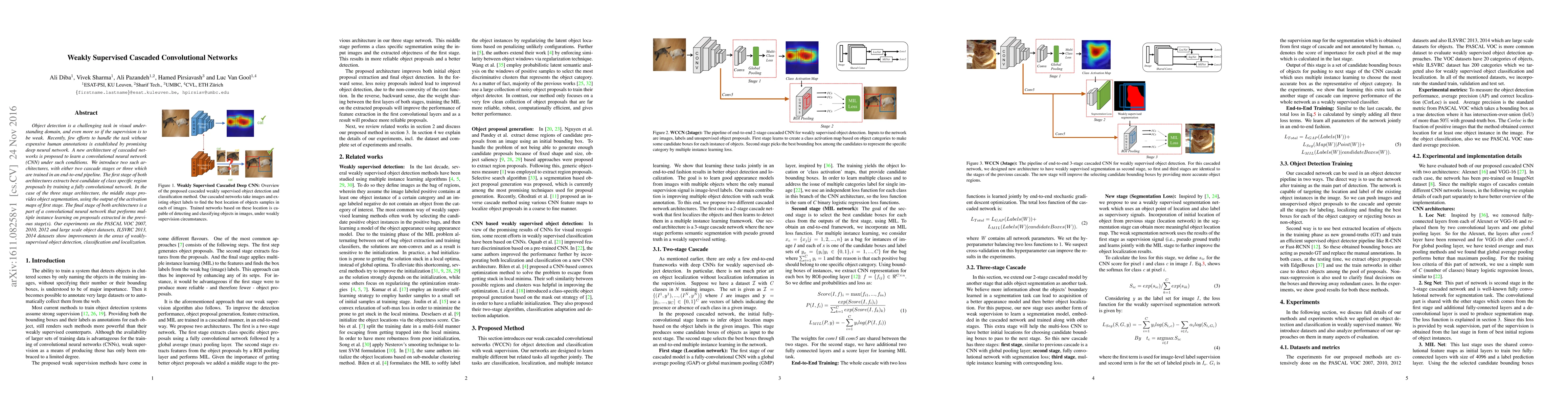 This paper proposes cascaded convolutional networks for weakly supervised object detection, introducing two architectures with two or three stages. The networks improve detection, classification, and localization with minimal human annotation, validated on PASCAL VOC and ILSVRC datasets.