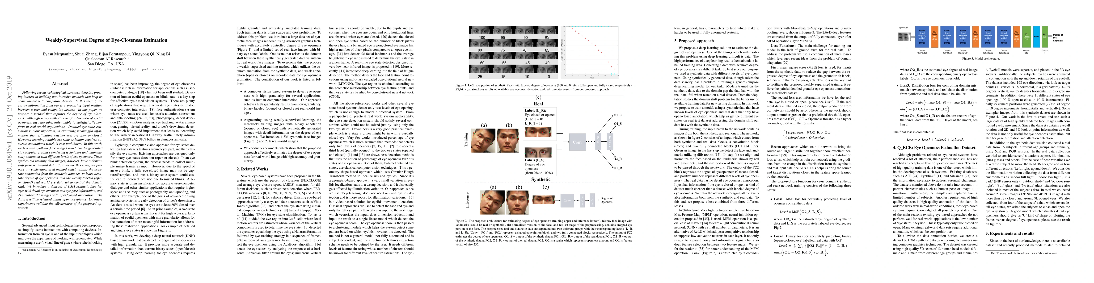 Following recent technological advances there is a growing interest in building non-intrusive methods that help us communicate with computing devices. In this regard, accurate information from eye is a promising input medium between a user and computing devices. In this paper we propose a method that captures the degree of eye closeness. Although many methods exist for detection of eyelid openness, they are inherently unable to satisfactorily perform in real world applications. Detailed eye state estimation is more important, in extracting meaningful information, than estimating whether eyes are open or closed. However, learning reliable eye state estimator requires accurate annotations which is cost prohibitive. In this work, we leverage synthetic face images which can be generated via computer graphics rendering techniques and automatically annotated with different levels of eye openness. These synthesized training data images, however, have a domain shift from real-world data. To alleviate this issue, we propose a weakly-supervised method which utilizes the accurate annotation from the synthetic data set, to learn accurate degree of eye openness, and the weakly labeled (open or closed) real world eye data set to control the domain shift. We introduce a data set of 1.3M synthetic face images with detail eye openness and eye gaze information, and 21k real-world images with open/closed annotation. The dataset will be released online upon acceptance. Extensive experiments validate the effectiveness of the proposed approach.
