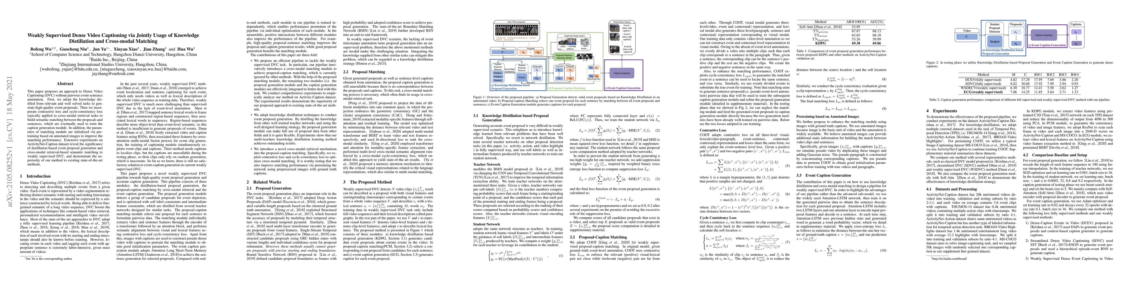 This paper introduces a weakly supervised dense video captioning method using knowledge distillation and cross-modal matching, achieving high performance without pairwise event-sentence annotations. It leverages pre-trained models and contrastive losses to enhance semantic alignment between event proposals and sentences.