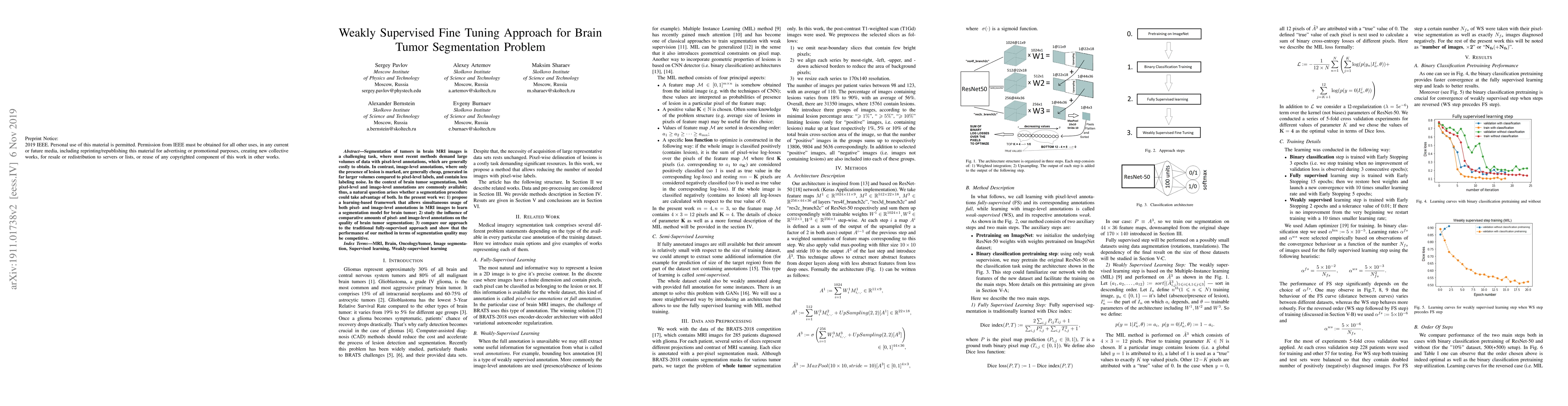 Segmentation of tumors in brain MRI images is a challenging task, where most recent methods demand large volumes of data with pixel-level annotations, which are generally costly to obtain. In contrast, image-level annotations, where only the presence of lesion is marked, are generally cheap, generated in far larger volumes compared to pixel-level labels, and contain less labeling noise. In the context of brain tumor segmentation, both pixel-level and image-level annotations are commonly available; thus, a natural question arises whether a segmentation procedure could take advantage of both. In the present work we: 1) propose a learning-based framework that allows simultaneous usage of both pixel- and image-level annotations in MRI images to learn a segmentation model for brain tumor; 2) study the influence of comparative amounts of pixel- and image-level annotations on the quality of brain tumor segmentation; 3) compare our approach to the traditional fully-supervised approach and show that the performance of our method in terms of segmentation quality may be competitive.