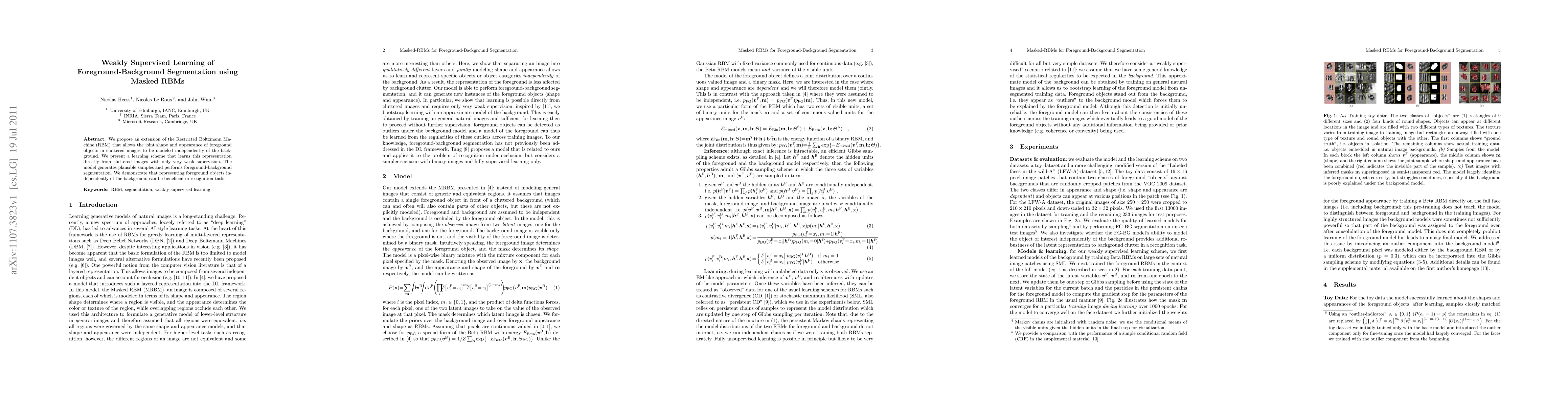 We propose an extension of the Restricted Boltzmann Machine (RBM) that allows the joint shape and appearance of foreground objects in cluttered images to be modeled independently of the background. We present a learning scheme that learns this representation directly from cluttered images with only very weak supervision. The model generates plausible samples and performs foreground-background segmentation. We demonstrate that representing foreground objects independently of the background can be beneficial in recognition tasks.