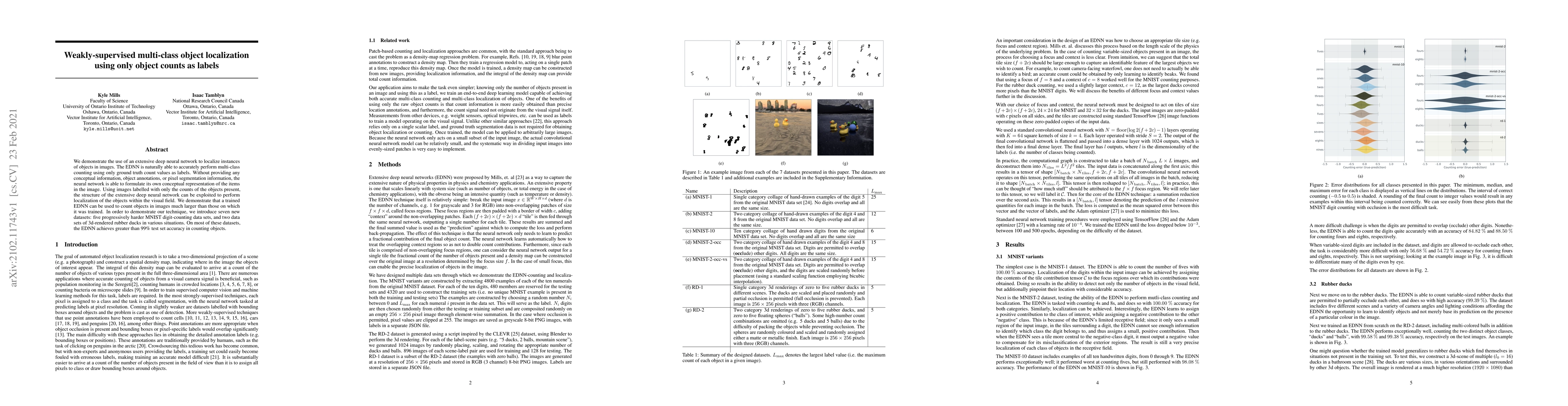 We demonstrate the use of an extensive deep neural network to localize instances of objects in images. The EDNN is naturally able to accurately perform multi-class counting using only ground truth count values as labels. Without providing any conceptual information, object annotations, or pixel segmentation information, the neural network is able to formulate its own conceptual representation of the items in the image. Using images labelled with only the counts of the objects present,the structure of the extensive deep neural network can be exploited to perform localization of the objects within the visual field. We demonstrate that a trained EDNN can be used to count objects in images much larger than those on which it was trained. In order to demonstrate our technique, we introduce seven new data sets: five progressively harder MNIST digit-counting data sets, and two datasets of 3d-rendered rubber ducks in various situations. On most of these datasets, the EDNN achieves greater than 99% test set accuracy in counting objects.