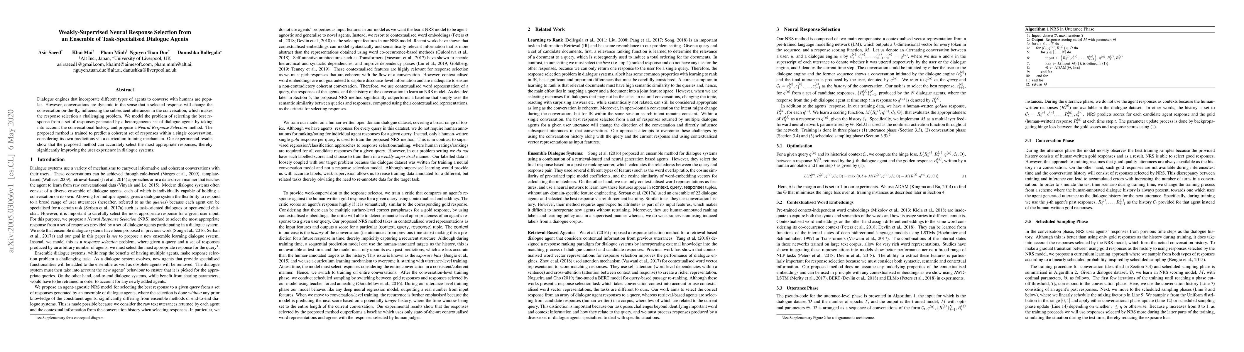This paper proposes a Neural Response Selection method for dialogue engines that selects the best response from an ensemble of specialized dialogue agents, considering the conversational history. The method employs a curriculum training mechanism to predict coherent responses, leading to improved user experience in dialogue systems.