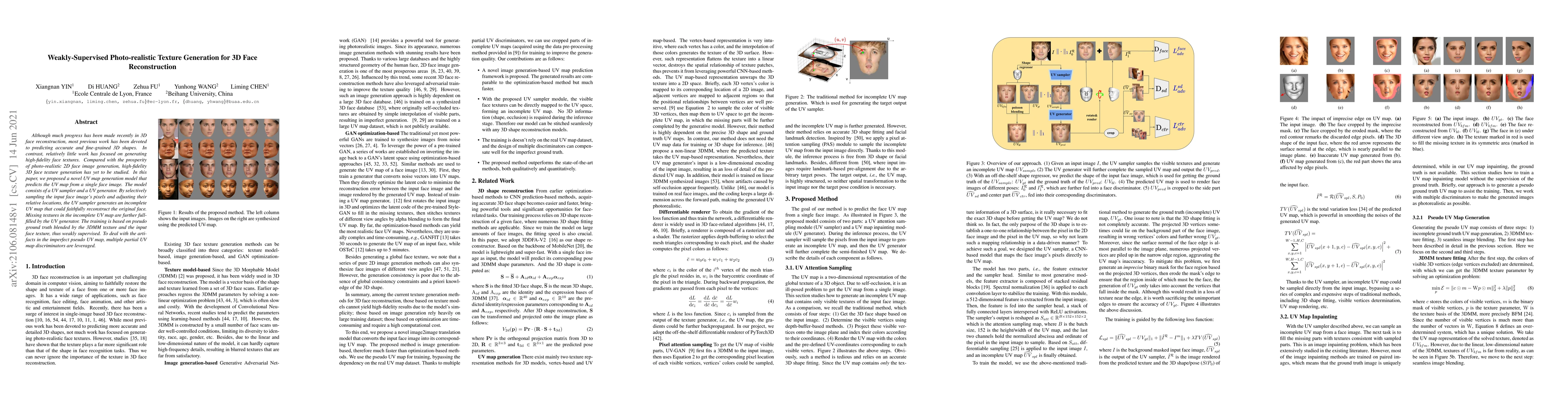 This paper proposes a novel method for generating high-fidelity 3D face textures from a single image, using a weakly-supervised approach that leverages pseudo ground truth and partial discriminators to handle imperfect maps.