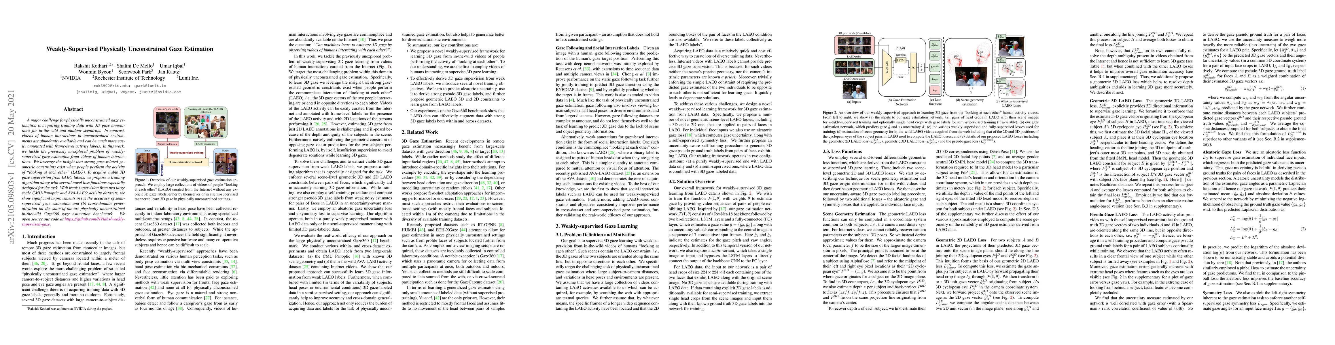 This paper proposes a novel weakly-supervised method for physically unconstrained gaze estimation using frame-level activity labels from videos of human interactions. It leverages the "looking at each other" activity to infer 3D gaze annotations, achieving significant improvements in accuracy and cross-domain generalization.