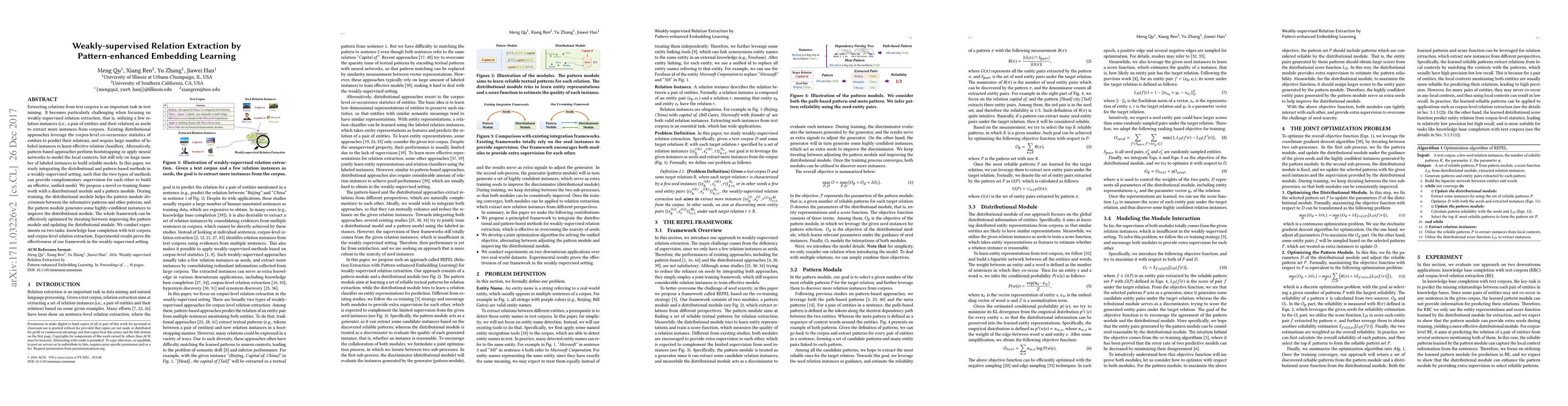 This paper proposes a novel co-training framework that combines distributional and pattern-based methods for weakly-supervised relation extraction, achieving effective results in knowledge base completion and corpus-level relation extraction tasks.