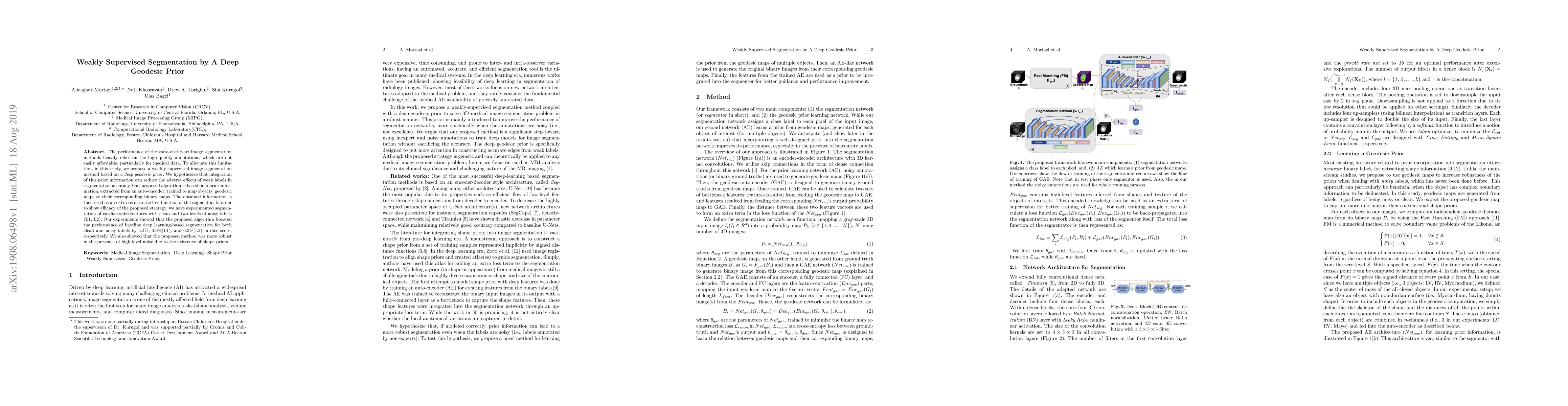 This research introduces a weakly supervised image segmentation method using a deep geodesic prior to improve performance with limited, noisy annotations, particularly beneficial for medical data. Experiments on cardiac substructures showed a 4.4%, 4.6%, and 6.3% increase in dice score for clean labels, and noisy levels L1 and L2, respectively, demonstrating enhanced robustness and accuracy.