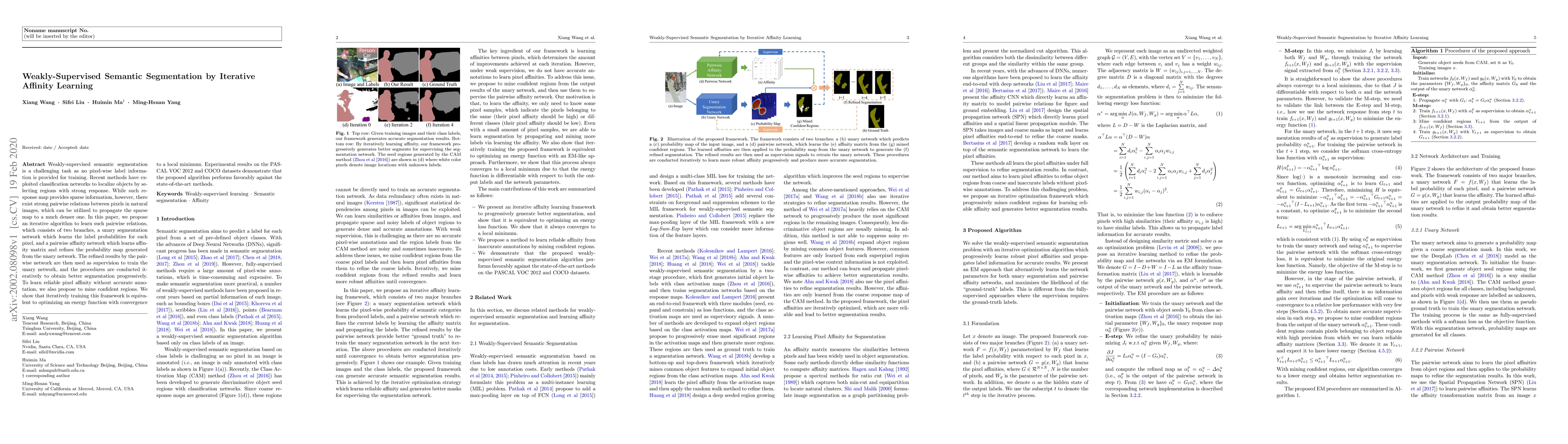 This paper proposes an iterative algorithm for weakly-supervised semantic segmentation that utilizes classification networks and pairwise relations between pixels to progressively refine segmentation maps. The framework includes a unary segmentation network and a pairwise affinity network, iteratively improving segmentation by mining confident regions. Experimental results show its effectiveness on PASCAL VOC 2012 and COCO datasets.