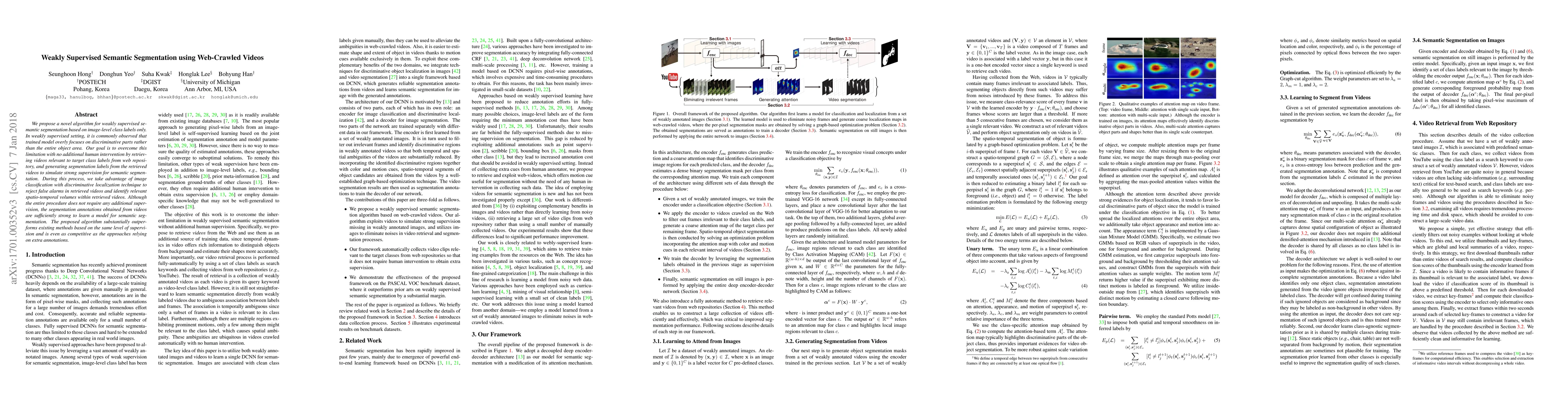 This paper introduces a weakly supervised semantic segmentation algorithm that leverages web-crawled videos to generate segmentation labels without additional human intervention, significantly outperforming existing methods. The approach uses image classification and discriminative localization to refine video retrieval and segmentation.
