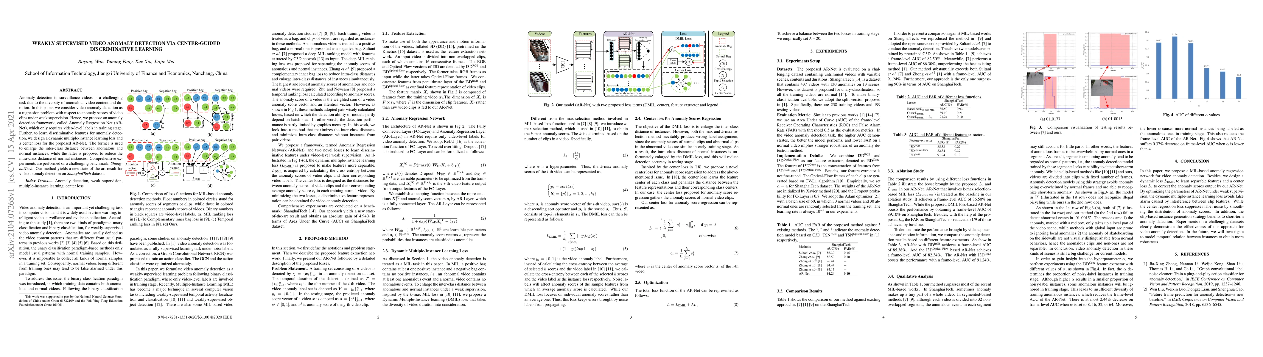This paper proposes Anomaly Regression Net (AR-Net) for weakly supervised video anomaly detection, utilizing video-level labels and incorporating a dynamic multiple-instance learning loss and a center loss to enhance feature discrimination. The method achieves state-of-the-art results on the ShanghaiTech dataset.