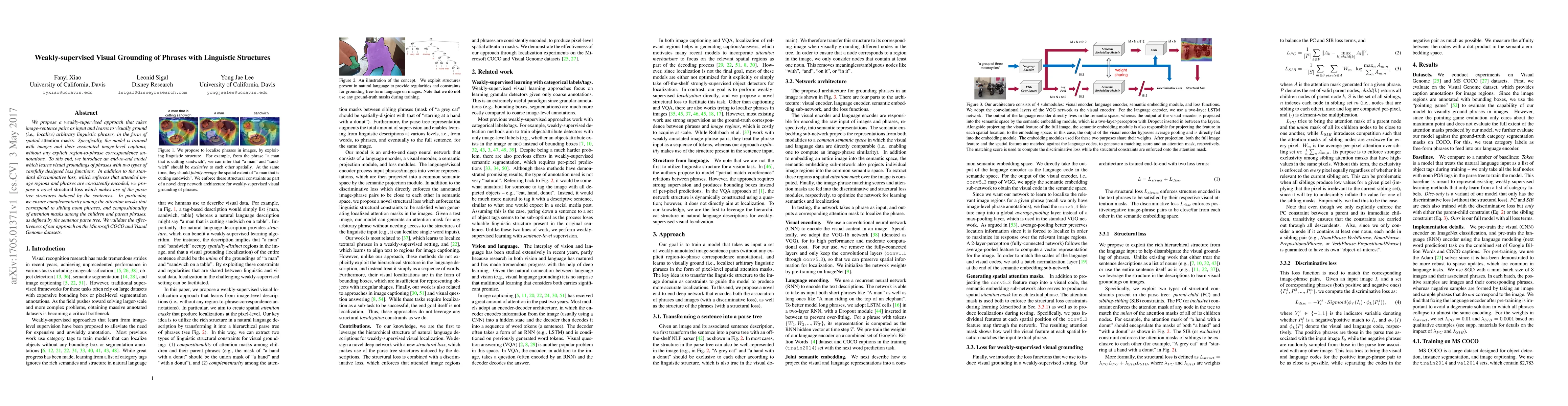 Researchers propose a weakly-supervised approach to visually ground linguistic phrases in images without explicit annotations, using two types of loss functions that ensure consistency and compositionality among attention masks.