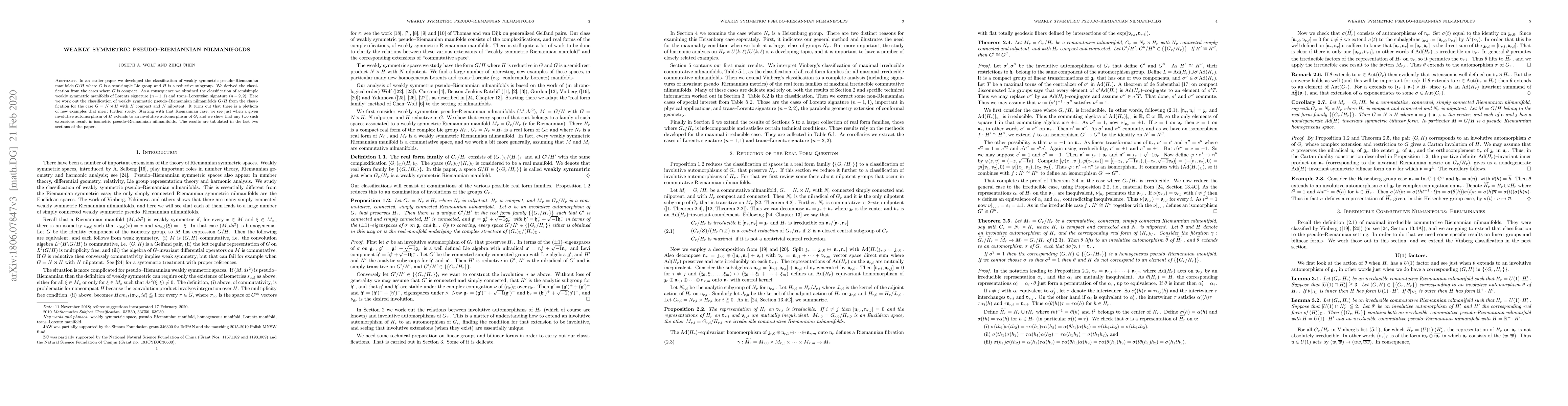 In an earlier paper we developed the classification of weakly symmetric pseudo--riemannian manifolds $G/H$ where $G$ is a semisimple Lie group and $H$ is a reductive subgroup. We derived the classification from the cases where $G$ is compact. As a consequence we obtained the classification of semisimple weakly symmetric manifolds of Lorentz signature $(n-1,1)$ and trans--lorentzian signature $(n-2,2)$. Here we work out the classification of weakly symmetric pseudo--riemannian nilmanifolds $G/H$ from the classification for the case $G = N\rtimes H$ with $H$ compact and $N$ nilpotent. It turns out that there is a plethora of new examples that merit further study. Starting with that riemannian case, we see just when a given involutive automorphism of $H$ extends to an involutive automorphism of $G$, and we show that any two such extensions result in isometric pseudo--riemannian nilmanifolds. The results are tabulated in the last two sections of the paper.