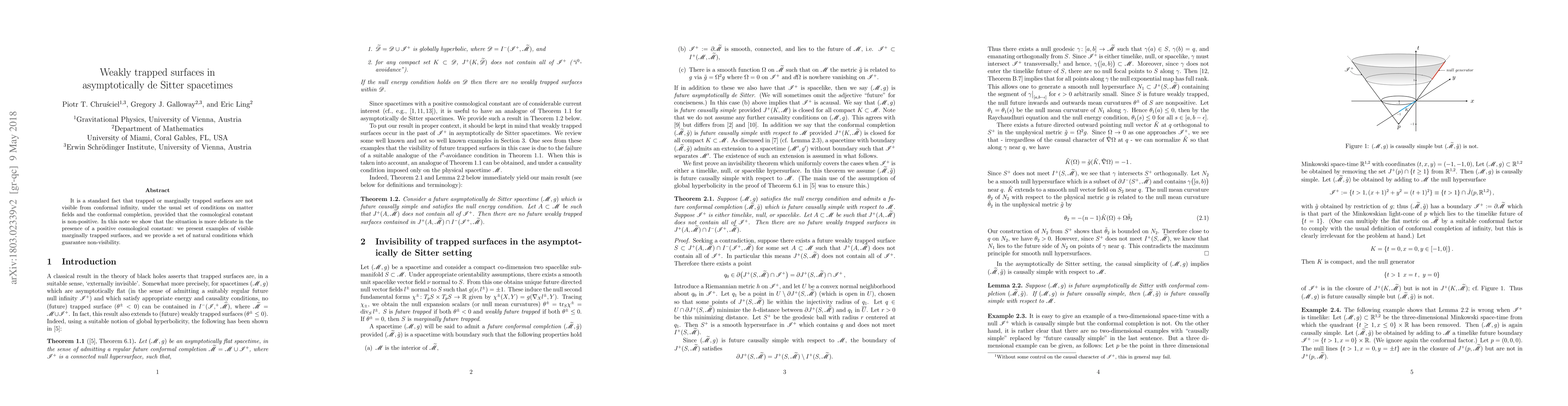 It is a standard fact that trapped or marginally trapped surfaces are not visible from conformal infinity, under the usual set of conditions on matter fields and the conformal completion, provided that the cosmological constant is non-positive. In this note we show that the situation is more delicate in the presence of a positive cosmological constant: we present examples of visible marginally trapped surfaces, and we provide a set of natural conditions which guarantee non-visibility.