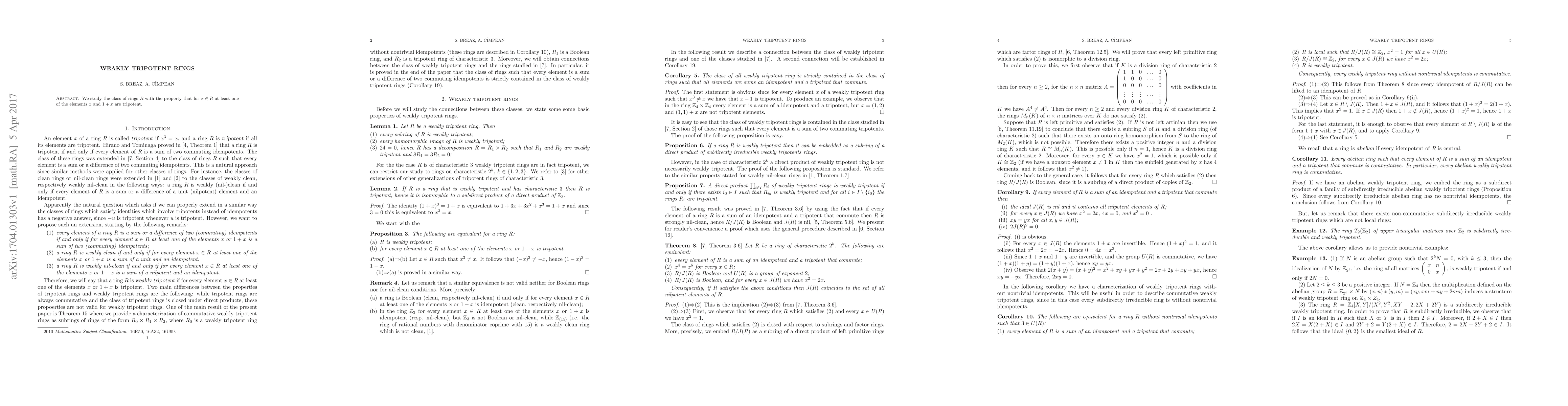 We study the class of rings $R$ with the property that for $x\in R$ at least one of the elements $x$ and $1+x$ are tripotent.