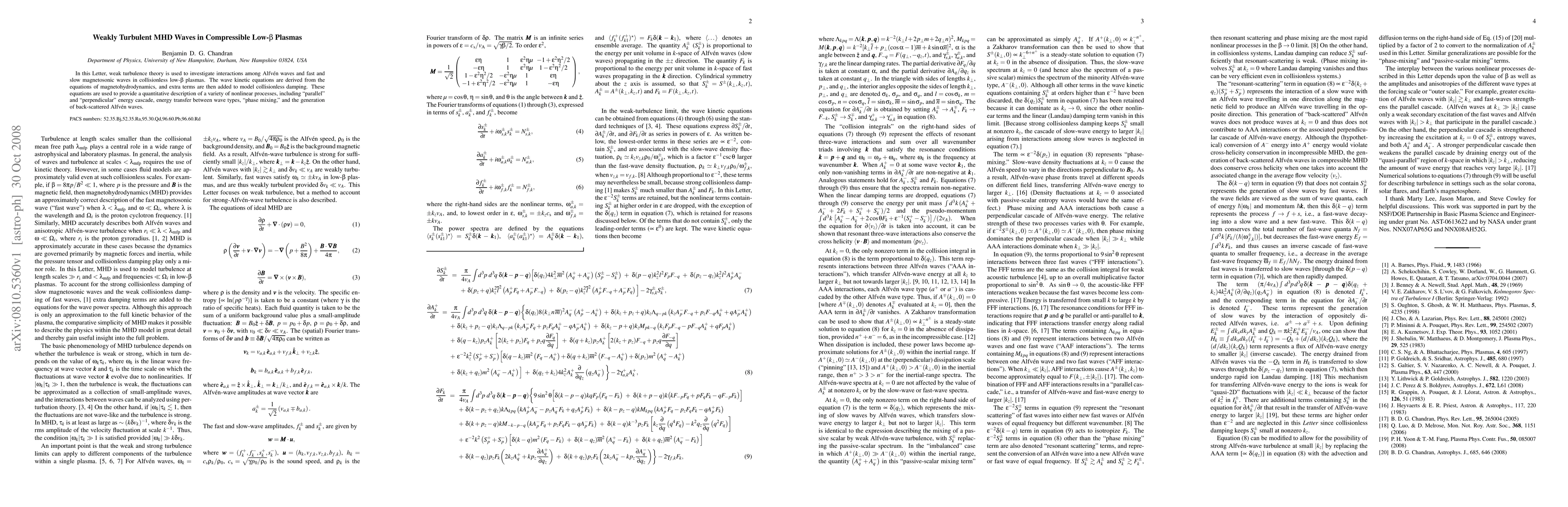 This paper employs weak turbulence theory to study interactions among Alfven and magnetosonic waves in low-beta plasmas, deriving wave kinetic equations that account for collisionless damping and describing nonlinear processes like energy cascades and wave type energy transfer.