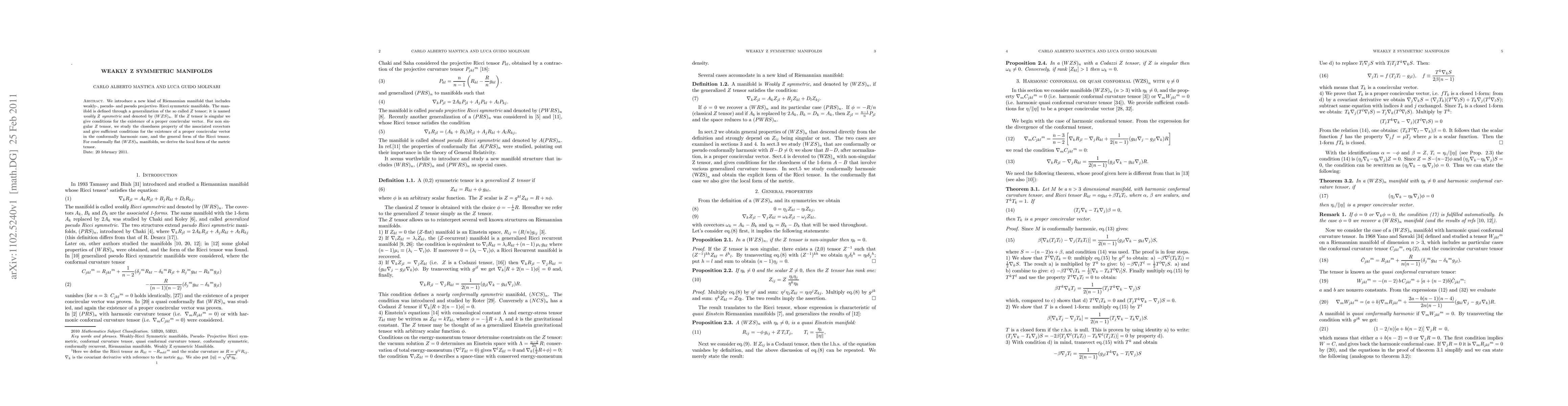 This paper introduces "weakly Z symmetric" (WZS) Riemannian manifolds, a generalization of previously defined Ricci symmetric types. It explores the conditions for the existence of proper concircular vectors and the local form of the metric tensor for specific cases, including conformally flat manifolds.