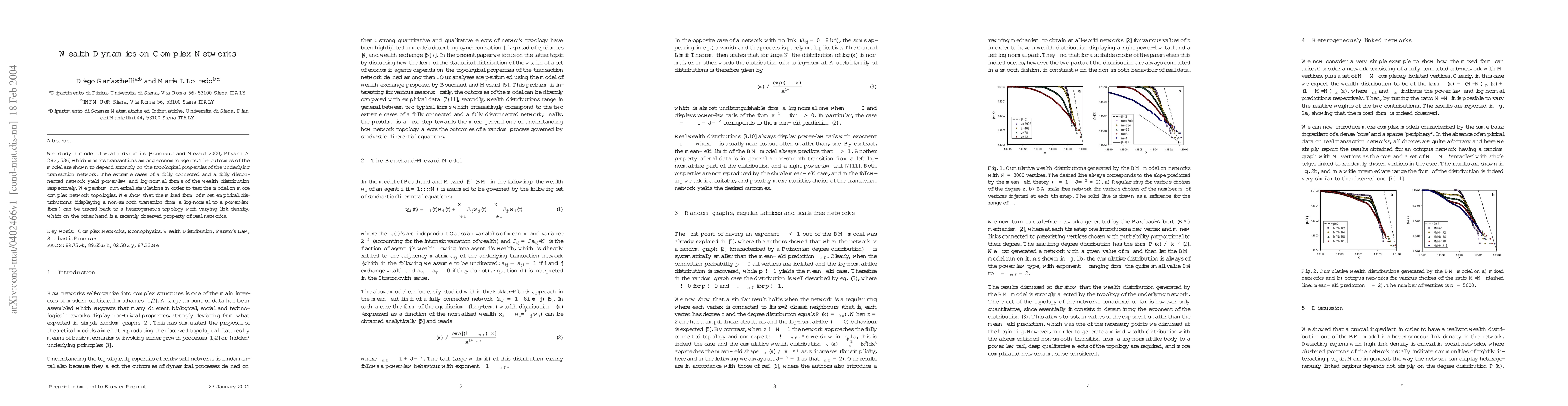 We study a model of wealth dynamics [Bouchaud and M\'ezard 2000, \emph{Physica A} \textbf{282}, 536] which mimics transactions among economic agents. The outcomes of the model are shown to depend strongly on the topological properties of the underlying transaction network. The extreme cases of a fully connected and a fully disconnected network yield power-law and log-normal forms of the wealth distribution respectively. We perform numerical simulations in order to test the model on more complex network topologies. We show that the mixed form of most empirical distributions (displaying a non-smooth transition from a log-normal to a power-law form) can be traced back to a heterogeneous topology with varying link density, which on the other hand is a recently observed property of real networks.