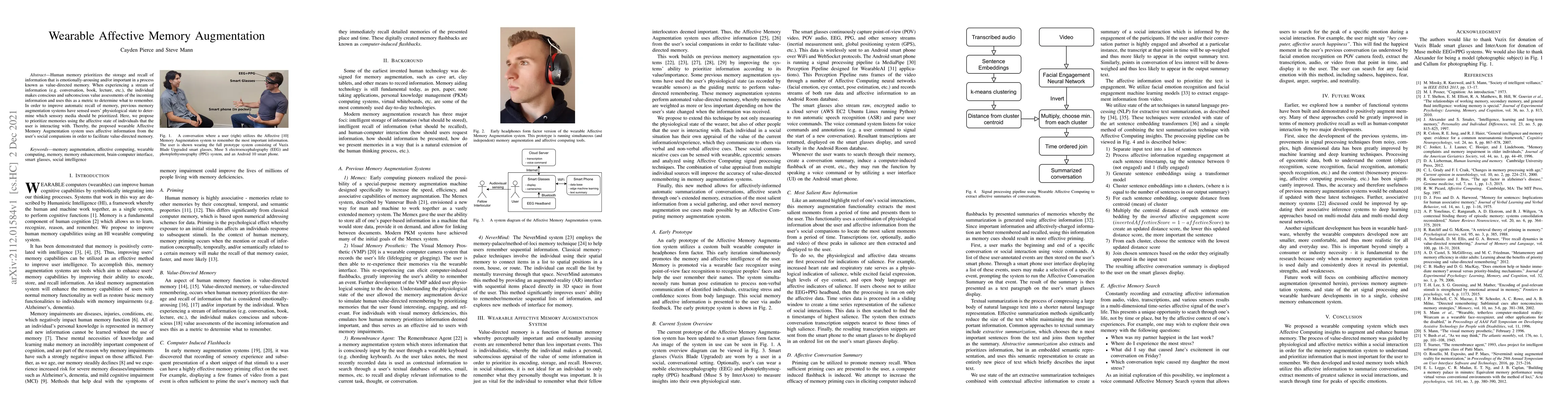 Human memory prioritizes the storage and recall of information that is emotionally-arousing and/or important in a process known as value-directed memory. When experiencing a stream of information (e.g. conversation, book, lecture, etc.), the individual makes conscious and subconscious value assessments of the incoming information and uses this as a metric to determine what to remember. In order to improve automatic recall of memory, previous memory augmentation systems have sensed users' physiological state to determine which sensory media should be prioritized. Here, we propose to prioritize memories using the affective state of individuals that the user is interacting with. Thereby, the proposed wearable Affective Memory Augmentation system uses affective information from the user's social companions in order to facilitate value-directed memory.