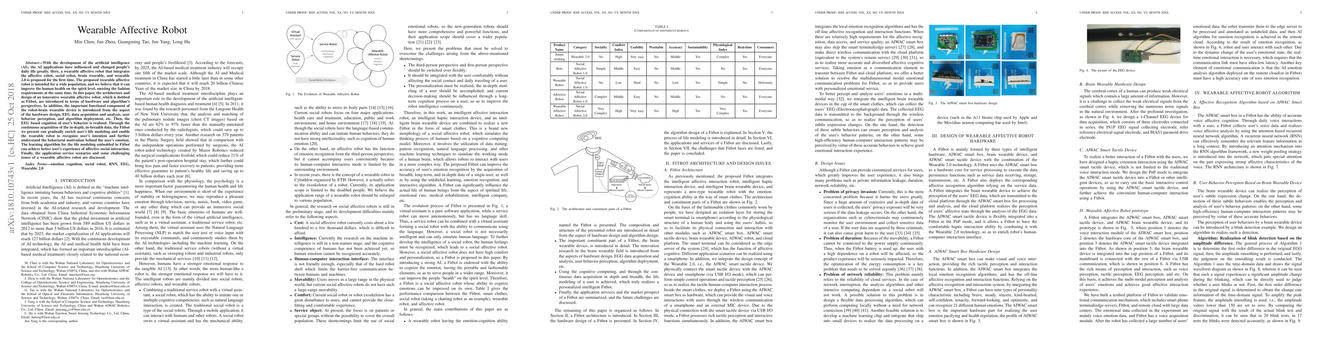The paper introduces Fitbot, a wearable affective robot that combines AIWAC smartbox, smart tactile device, and brain wearable for multi-modal emotion perception and analysis.