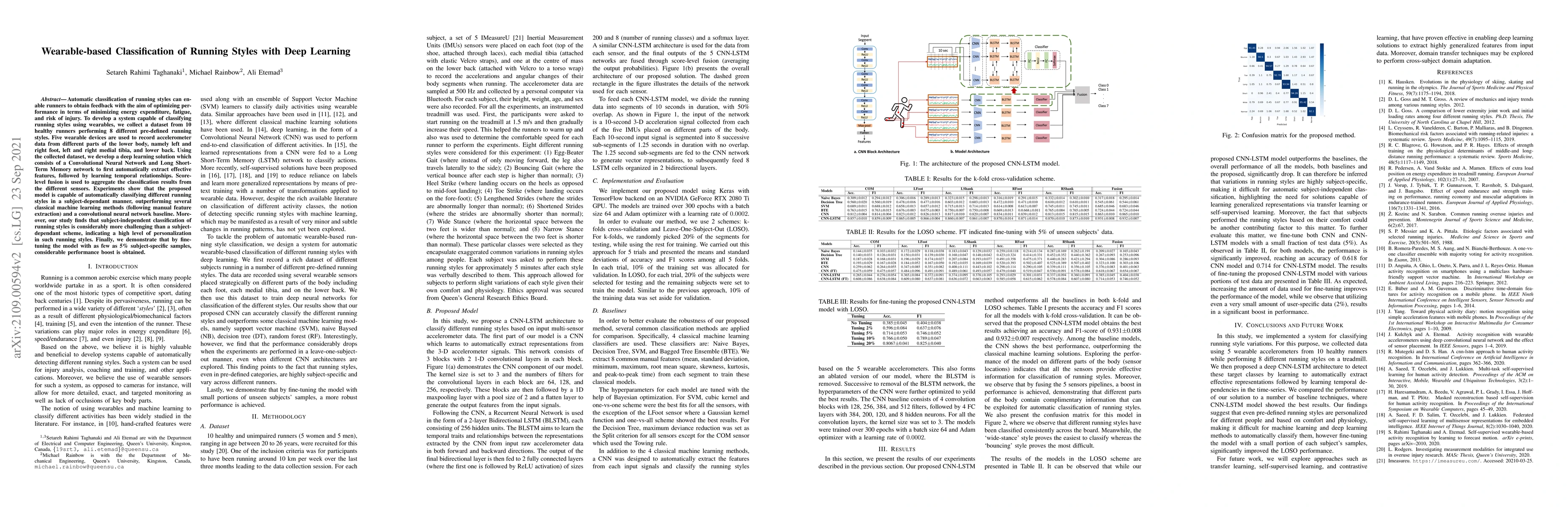 This research develops a deep learning model using wearable devices to classify running styles, aiming to optimize runners' performance. The model combines Convolutional Neural Networks and Long Short-Term Memory networks to extract features and learn temporal relationships, achieving superior classification results compared to traditional machine learning methods.