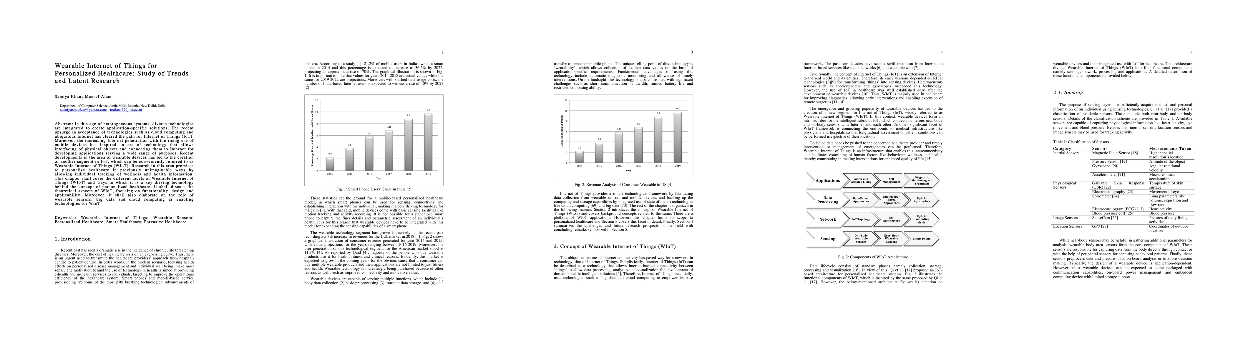 This paper explores the integration of Wearable Internet of Things (WIoT) in personalized healthcare, emphasizing its potential to track individual wellness and health data. It discusses the theoretical aspects of WIoT, highlighting its functionality, design, and applicability, along with the roles of wearable sensors, big data, and cloud computing.
