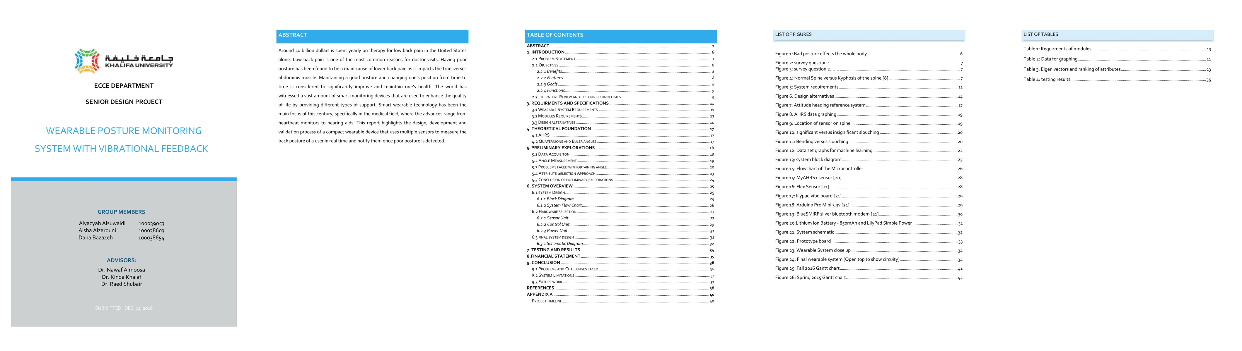 Around 50 billion dollars is spent yearly on therapy for low back pain in the United States alone. Low back pain is one of the most common reasons for doctor visits. Having poor posture has been found to be a main cause of lower back pain as it impacts the transverse abdominal muscle. Maintaining a good posture and changing position from time to time is considered to significantly improve and maintain personal health. The world has witnessed a vast amount of smart monitoring devices that are used to enhance the quality of life by providing different types of support. Smart wearable technology has been the main focus of this century, specifically in the medical field, where the advances range from heartbeat monitors to hearing aids. This report highlights the design, development and validation process of a compact wearable device that uses multiple sensors to measure the back posture of a user in real time and notify them once poor posture is detected.