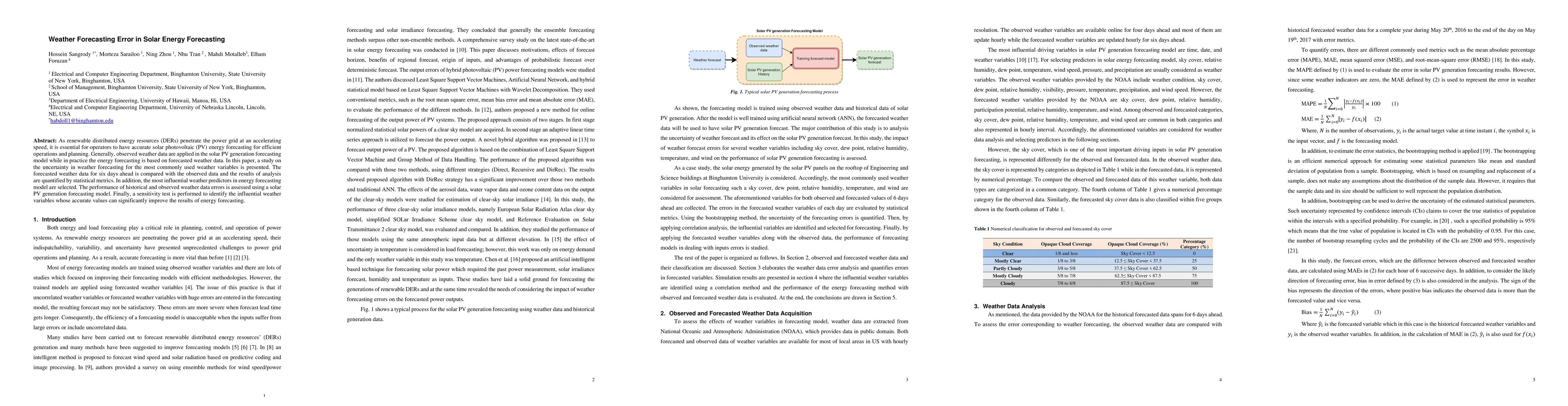 This paper investigates the uncertainty in weather forecasting for solar energy prediction, comparing forecasted and observed weather data over six days. It identifies the most influential weather variables for solar PV generation forecasting and assesses the impact of weather data errors on forecasting accuracy.